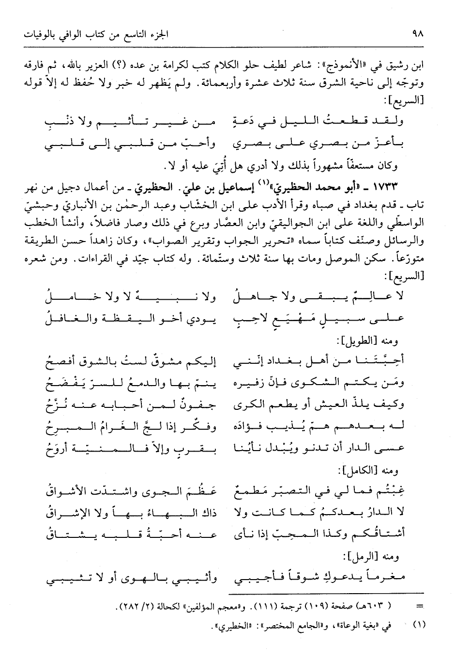 كتاب الوافي بالوفيات (اسم الجزء: 9)