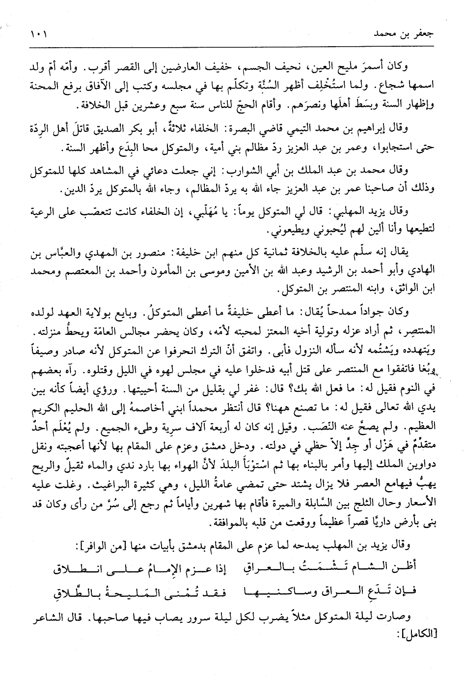وَقَالَ يزِيد المهلبي قَالَ لي المتَوَكل يَوْمًا يَا مهلبي إِن الْخُلَفَاء كَانَت تتعصب على الرّعية لتطيعها وَأَنا أَلين لَهُم ليحبوني ويطيعوني