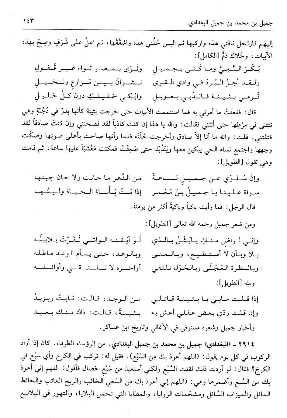 وأخبار جميل وشعره مُسْتَوفى فِي الأغاني وتاريخ ابْن عَسَاكِر