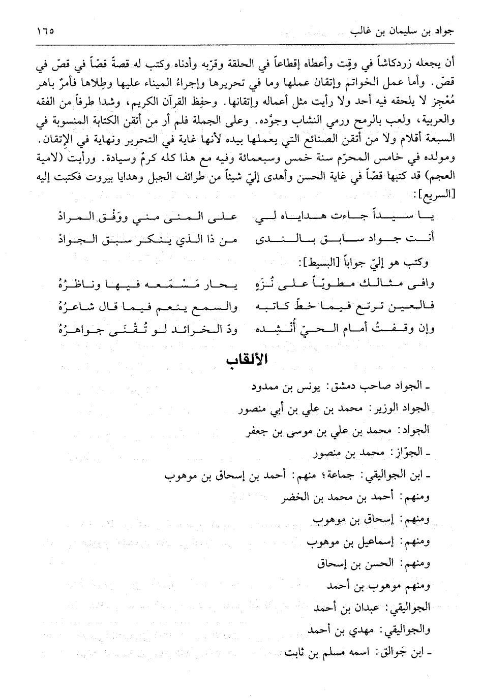 الْجواد صَاحب دمشق يُونُس بن مَمْدُود الْجواد الْوَزير مُحَمَّد بن عَليّ بن أبي مَنْصُور الْجواد مُحَمَّد بن عَليّ بن مُوسَى بن جَعْفَر الجوّاز مُحَمَّد بن مَنْصُور ابْن الجواليقي جمَاعَة مِنْهُم أَحْمد بن إِسْحَاق بن موهوب وَمِنْهُم أَحْمد بن مُحَمَّد بن الْخضر وَمِنْهُم إِسْحَاق بن موهوب وَمِنْهُم إِسْمَاعِيل بن موهوب وَمِنْهُم الْحسن بن إِسْحَاق وَمِنْهُم موهوب بن أَحْمد الجواليقي عَبْدَانِ بن أَحْمد والجواليقي مهْدي بن أَحْمد ابْن جوالق اسْمه مُسلم بن ثَابت