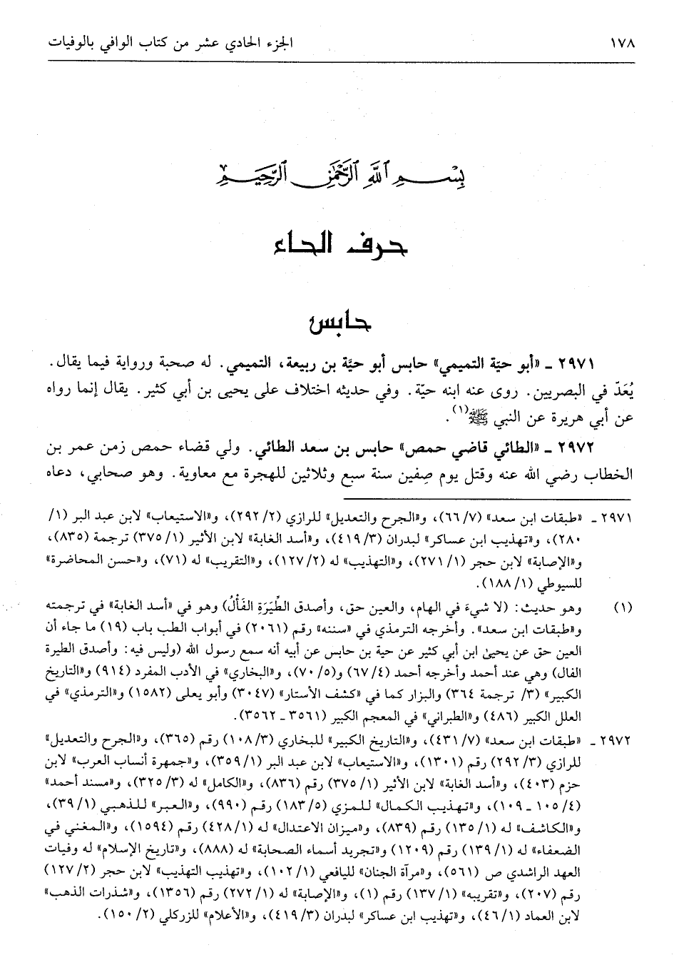 حَابِس بن سعد الطَّائِي ولي قَضَاء حمص زمن عمر بن الْخطاب رَضِي الله عَنهُ وَقتل يَوْم صفّين سنة سبع وَثَلَاثِينَ لِلْهِجْرَةِ مَعَ مُعَاوِيَة وَهُوَ صَحَابِيّ دَعَاهُ