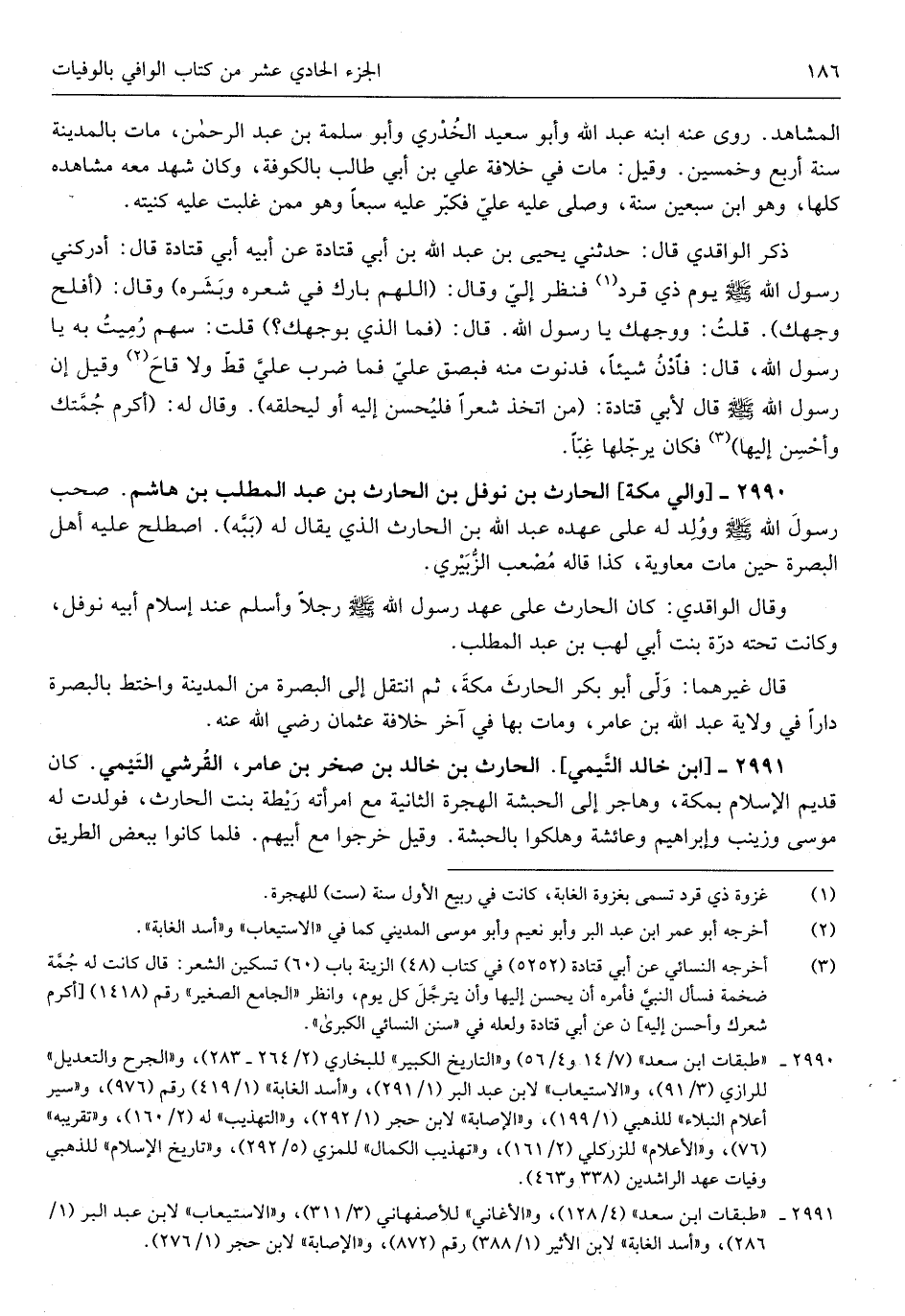من الْمشَاهد روى عَنهُ ابْنه عبد الله وَأَبُو سعيد الْخُدْرِيّ وَأَبُو سَلمَة بن عبد الرَّحْمَن مَاتَ بِالْمَدِينَةِ سنة أَربع وَخمسين