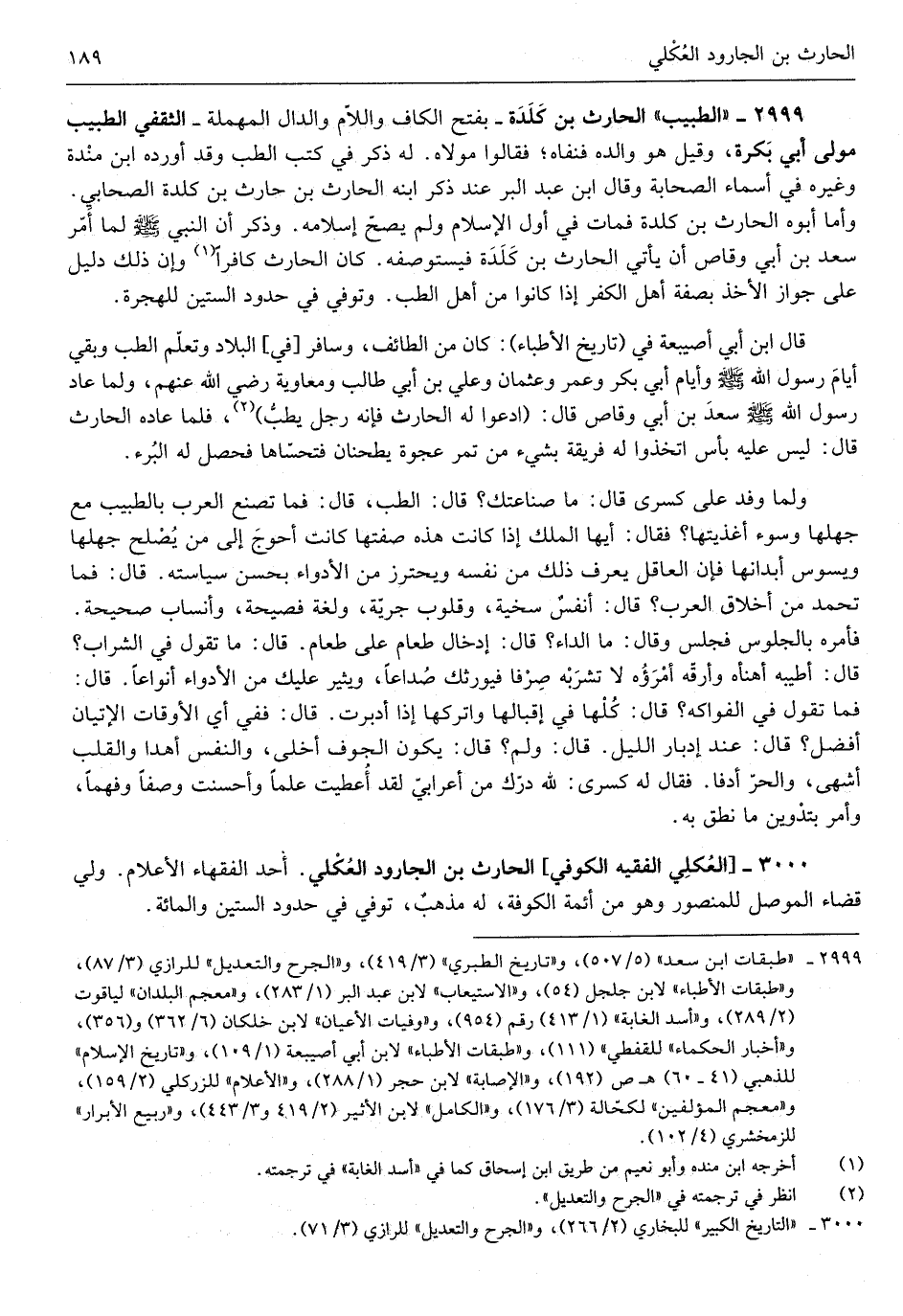 وَلما وَفد على كسْرَى قَالَ مَا صناعتك قَالَ الطِّبّ قَالَ فَمَا صنع الْعَرَب بالطبيب مَعَ جهلها)