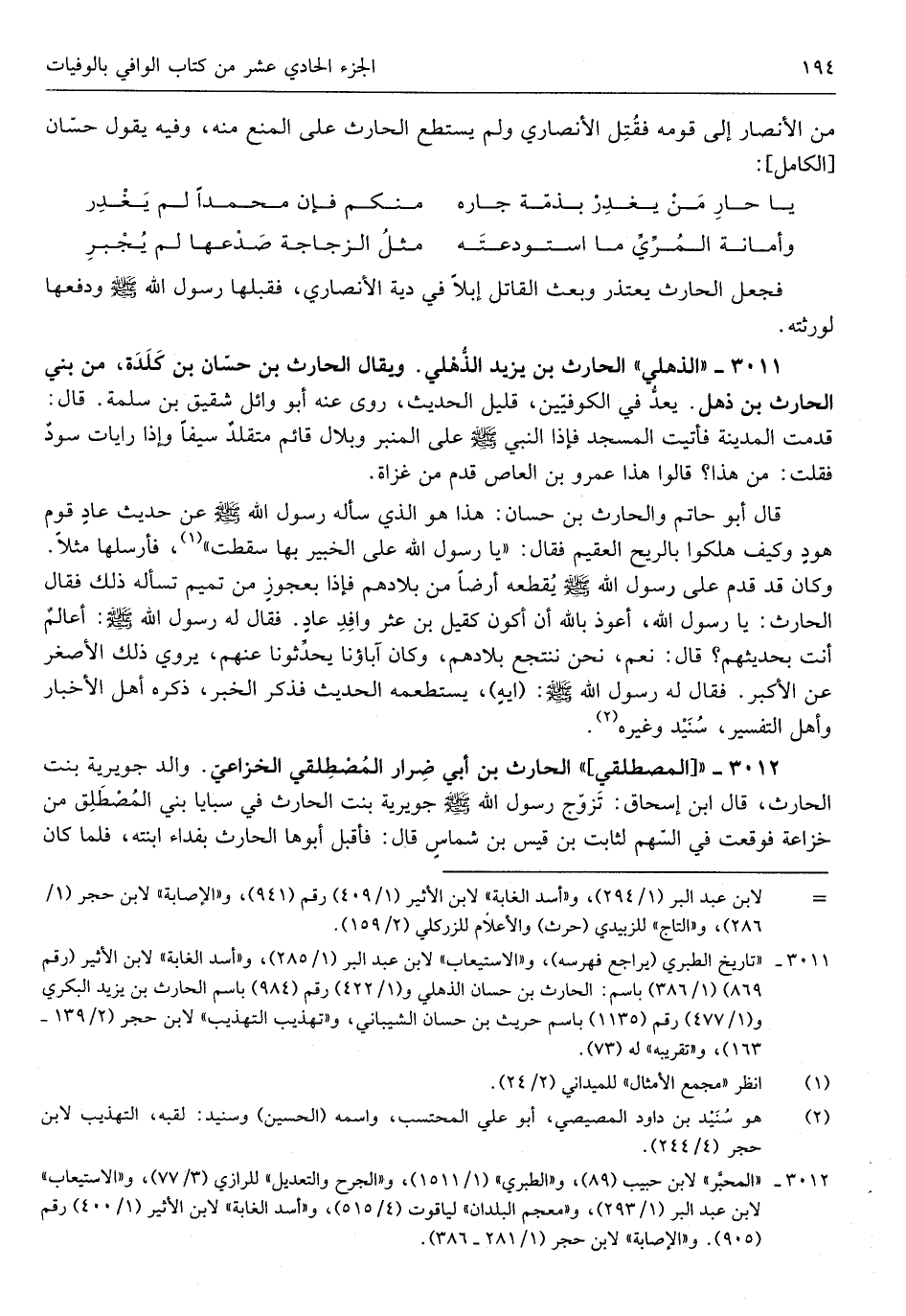 من الْأَنْصَار إِلَى قومه فَقتل الْأنْصَارِيّ وَلم يسْتَطع الْحَارِث على الْمَنْع مِنْهُ وَفِيه يَقُول حسّان من الْكَامِل