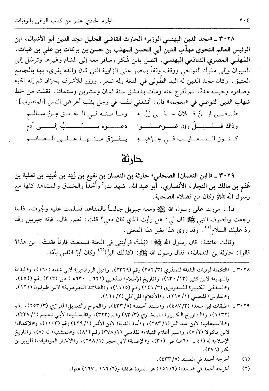 حَارِثَة بن النُّعْمَان بن نفيع بن زيد بن عبيد بن ثَعْلَبَة بن غنم بن مَالك بن النجار الْأنْصَارِيّ أَبُو عبد الله شهِد بَدْرًا وأُحُداً وَالْخَنْدَق والمشاهد كلهَا مَعَ رَسُول الله صلى الله عَلَيْهِ وَسلم وَكَانَ من فضلاء الصَّحَابَة