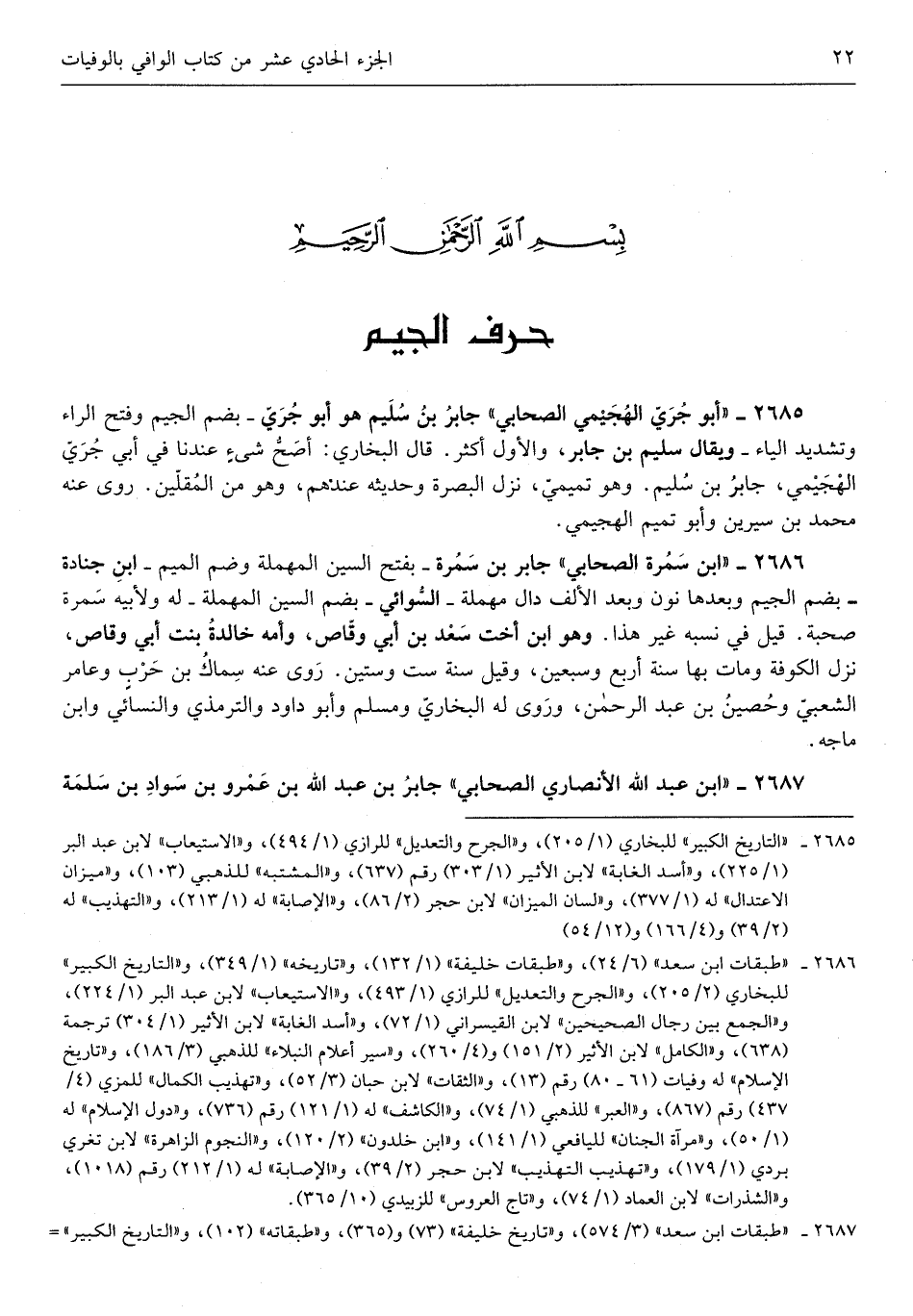 جَابر بن سَمُرَة بِفَتْح السِّين الْمُهْملَة وَضم الْمِيم ابْن جُنَادَة بِضَم الْجِيم وَبعدهَا نون وَبعد الْألف دَال مُهْملَة السوَائِي بِضَم السِّين الْمُهْملَة لَهُم ولأبيه سَمُرَة صُحْبَة