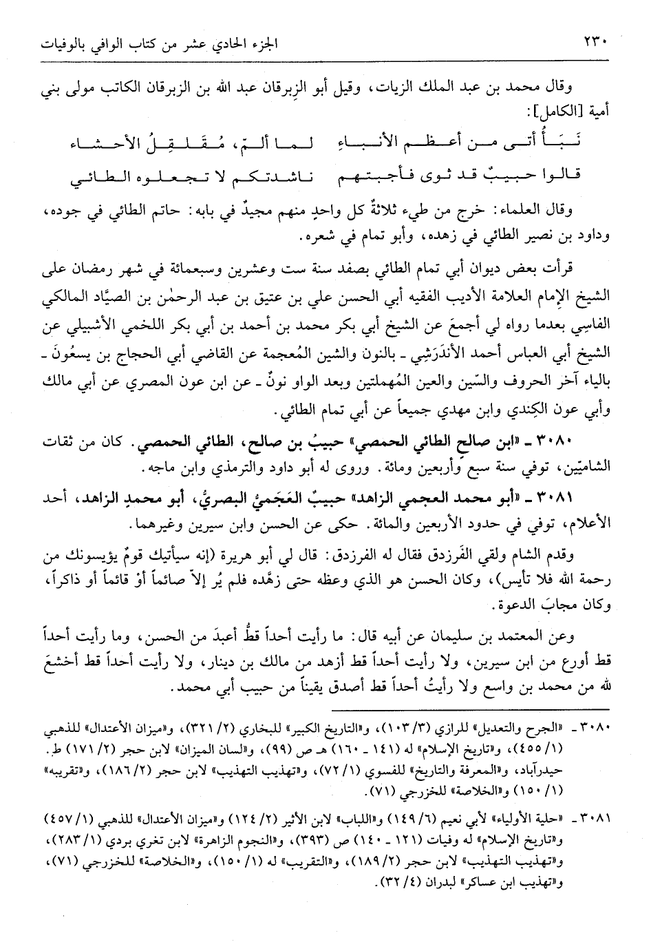 وَقَالَ الْعلمَاء خرج من طَيء ثلاثةٌ من كل واحدٍ مِنْهُم مجيدٌ فِي بَابه حَاتِم الطَّائِي فِي جوده وَدَاوُد بن نصير الطَّائِي فِي زهده وَأَبُو تَمام فِي شعره)