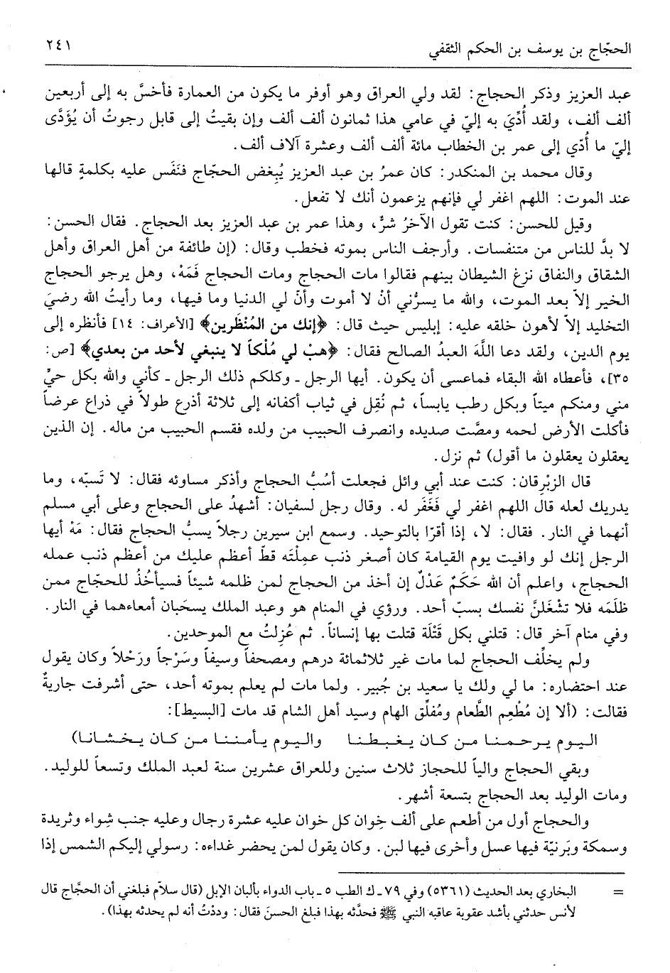 وَبَقِي الْحجَّاج والياً للحجاز ثَلَاث سِنِين وللعراق عشْرين سنة لعبد الْملك وتسعاً للوليد وَمَات الْوَلِيد بعد الْحجَّاج بِتِسْعَة أشهر