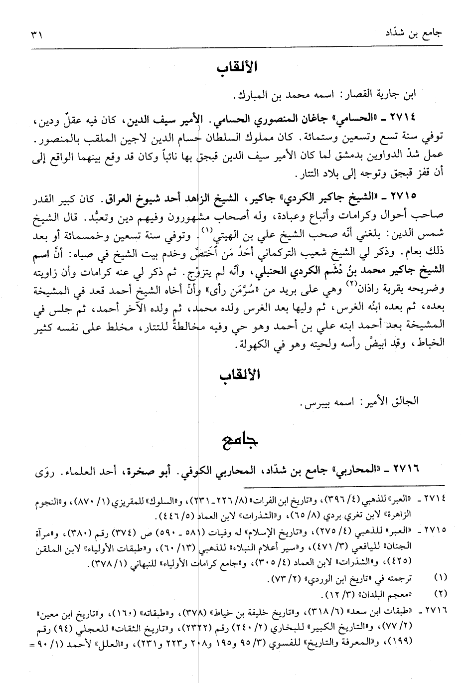ثمَّ ذكر لي عَنهُ كرامات وَأَن زاويته وضريحه بقرية راذان وَهِي على بريد من سر من رأى وَأَن أَخَاهُ الشَّيْخ أَحْمد قعد فِي المشيخة بعده ثمَّ بعده ابْنه الْغَرْس ثمَّ وَليهَا بعد الْغَرْس وَلَده مُحَمَّد ثمَّ وَلَده الآخر أَحْمد ثمَّ جلس فِي المشيخة بعد أَحْمد ابْنه عَليّ بن أَحْمد وَهُوَ حَيّ وَفِيه مُخَالطَة للتتار مخلط على نَفسه كثير الخباط وَقد أَبيض رَأسه ولحيته وَهُوَ فِي الكهولة