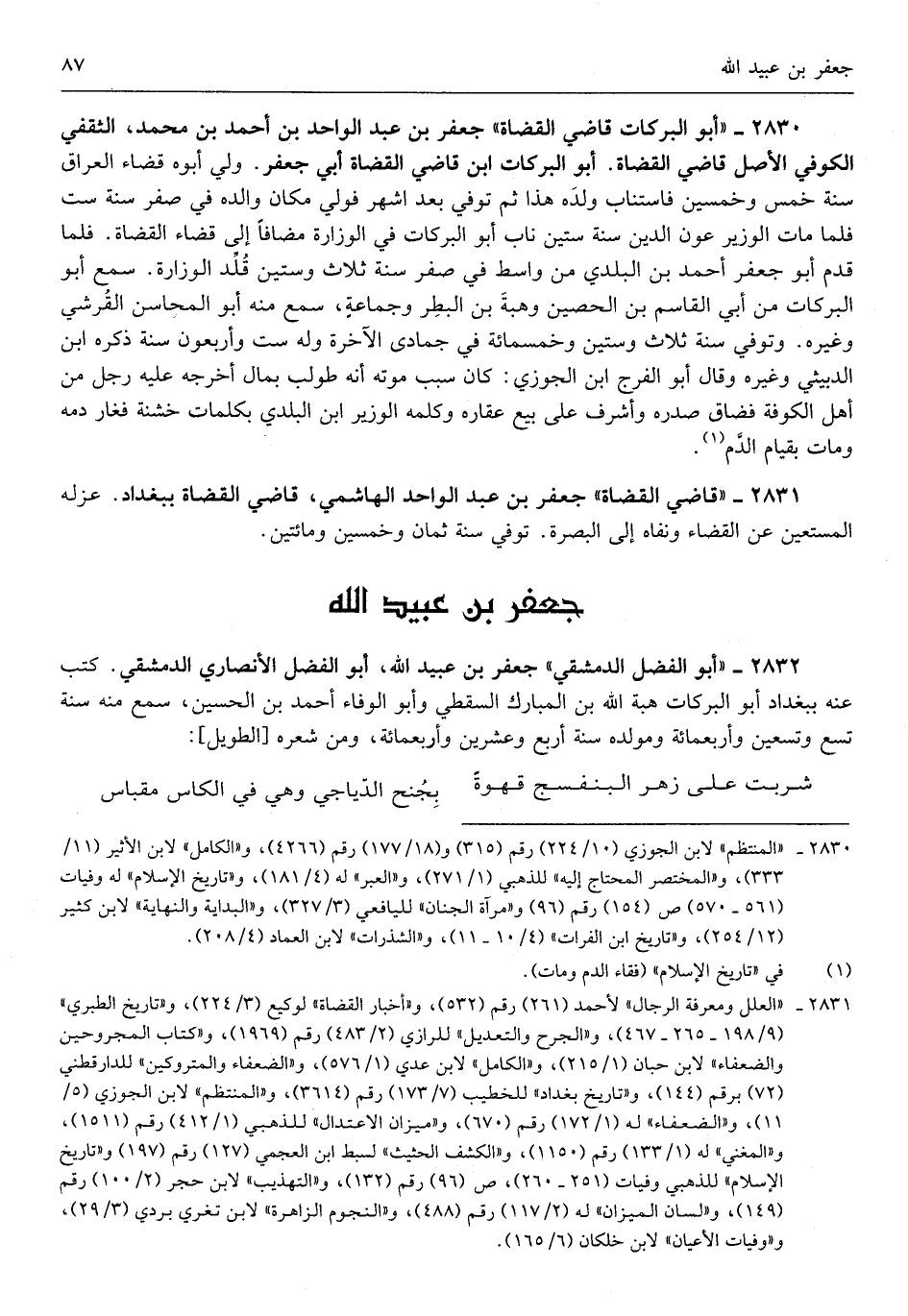3 - (جَعْفَر بن عبيد الله أَبُو الْفضل الدِّمَشْقِي)