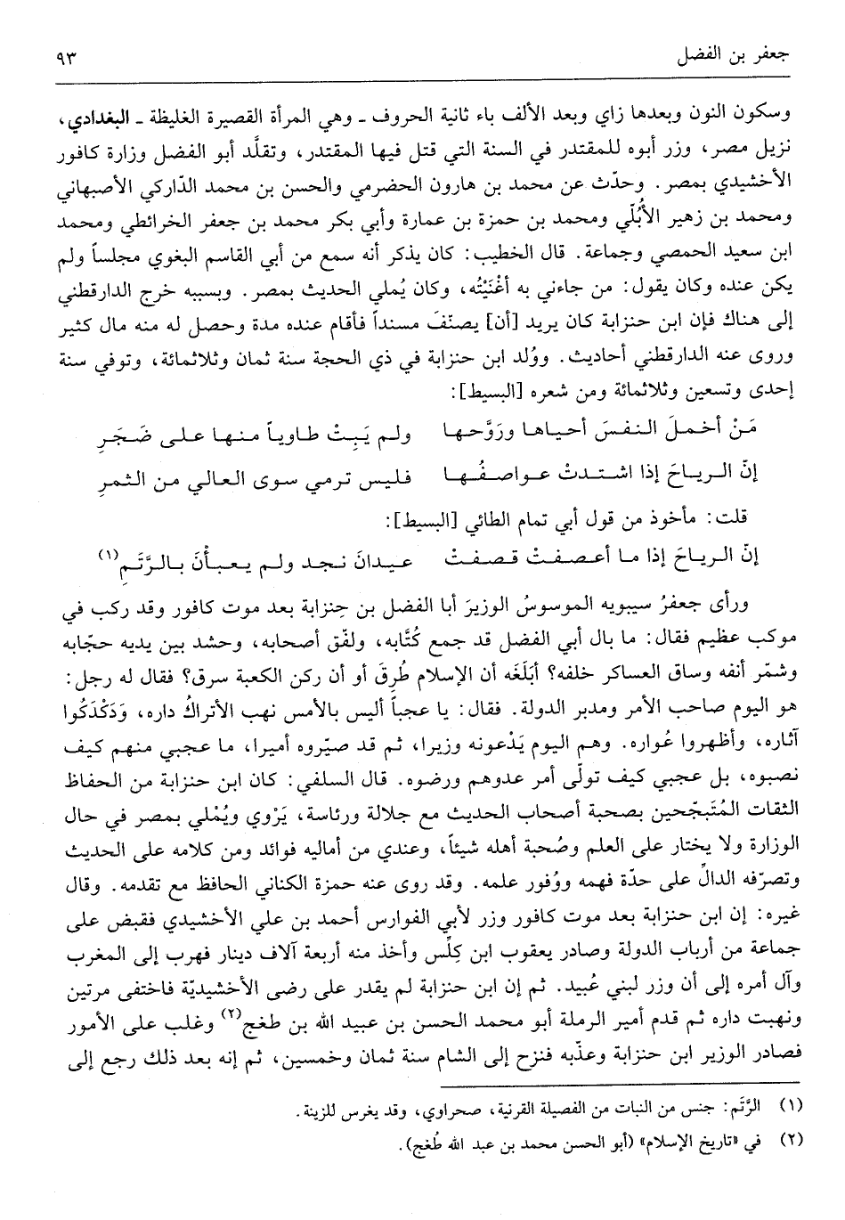 وَرَأى جَعْفَر سِيبَوَيْهٍ الموسوس الْوَزير أَبَا الْفضل بن حنزابة بعد موت كافور وَقد ركب فِي)