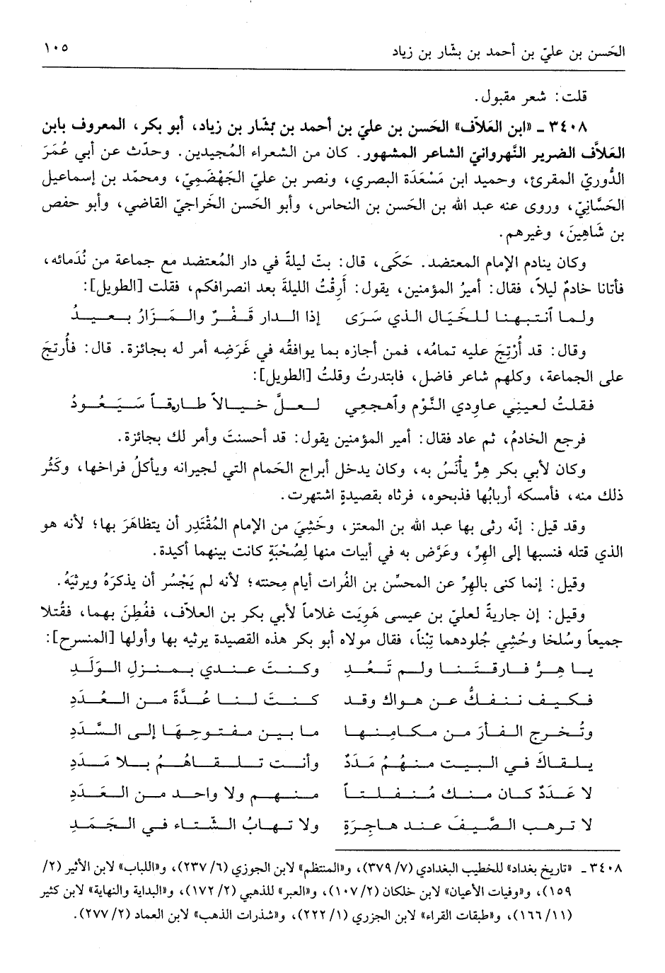 الْحسن بن عَليّ بن أَحْمد بن بشار بن زِيَاد أَبُو بكر الْمَعْرُوف بِابْن العلاف الضَّرِير النهرواني الشَّاعِر الْمَشْهُور