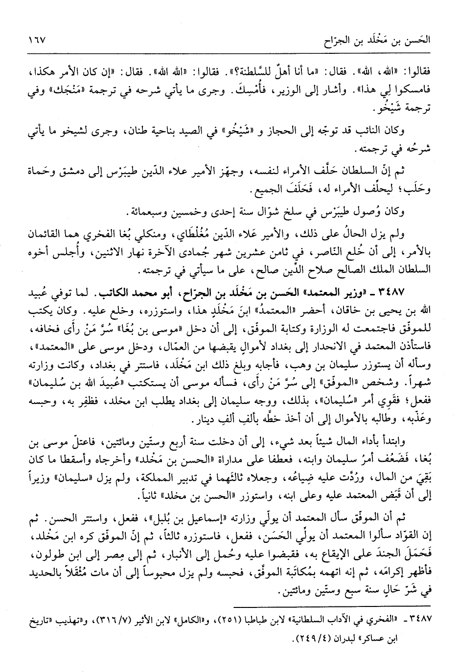 فَقَالُوا الله الله فَقَالَ مَا أَنا أهلٌ للسلطنة فَقَالُوا الله الله فَقَالَ إِن كَانَ الْأَمر هَكَذَا فامسكوا لي هَذَا وَأَشَارَ إِلَى الْوَزير فَأمْسك وَجرى مَا يَأْتِي شَرحه فِي تَرْجَمَة منجك وَفِي تَرْجَمَة شيخو