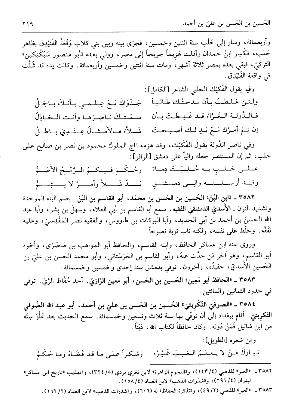 الْحُسَيْن بن الْحسن بن عَليّ بن أَحْمد أَبُو عبد الله الصُّوفِي التكريتي أَقَامَ بِبَغْدَاد إِلَى أَن توفّي بهَا سنة ثَلَاث وَتِسْعين وَخَمْسمِائة سمع الحَدِيث بعد علو سنه من ابْن شاتيل فَمن دونه وَكَانَ حَافِظًا لكتاب الله دينا