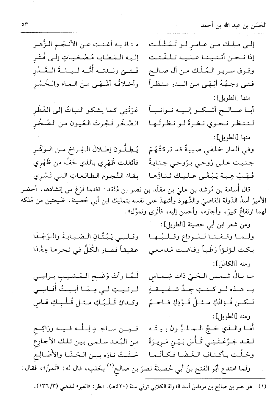 وَمن شعر ابْن أبي حَصِينَة من الطَّوِيل
