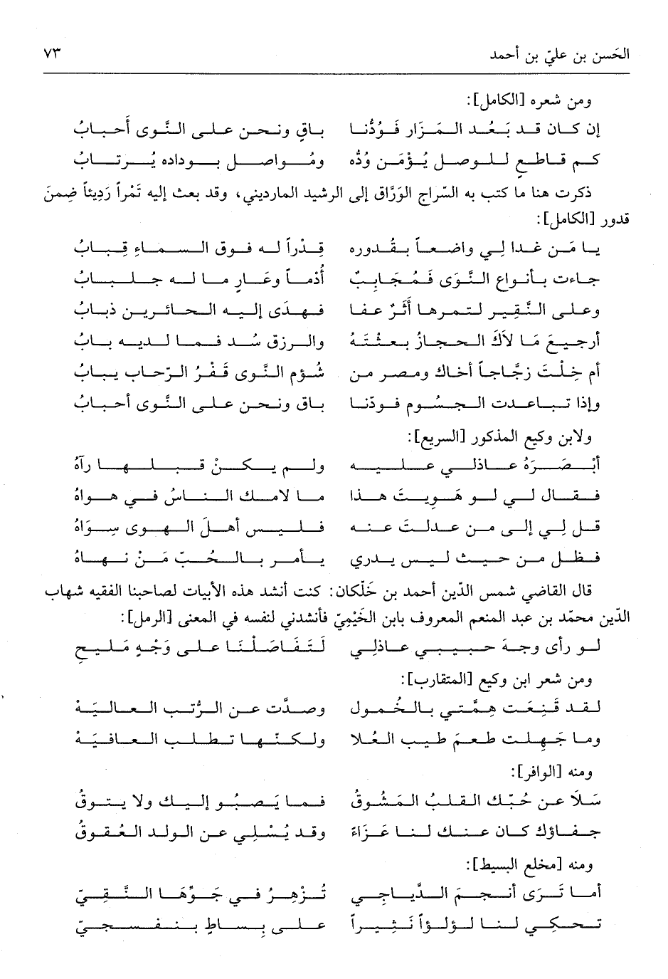 ذكرت هُنَا مَا كتب بِهِ السراج الْوراق إِلَى الرشيد المارديني وَقد بعث إِلَيْهِ تَمرا رديئاً ضمن قدور من الْكَامِل