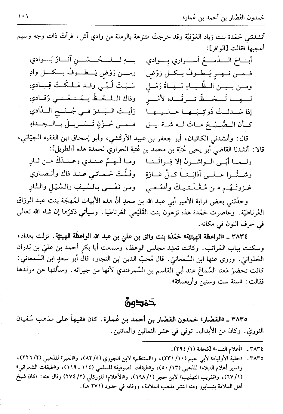 حمدة بنت واثقبن عليّ بن عبد الله الواعظة الهيتيَّة نزلت بَغْدَاد وسكنت بِبَاب الْمَرَاتِب