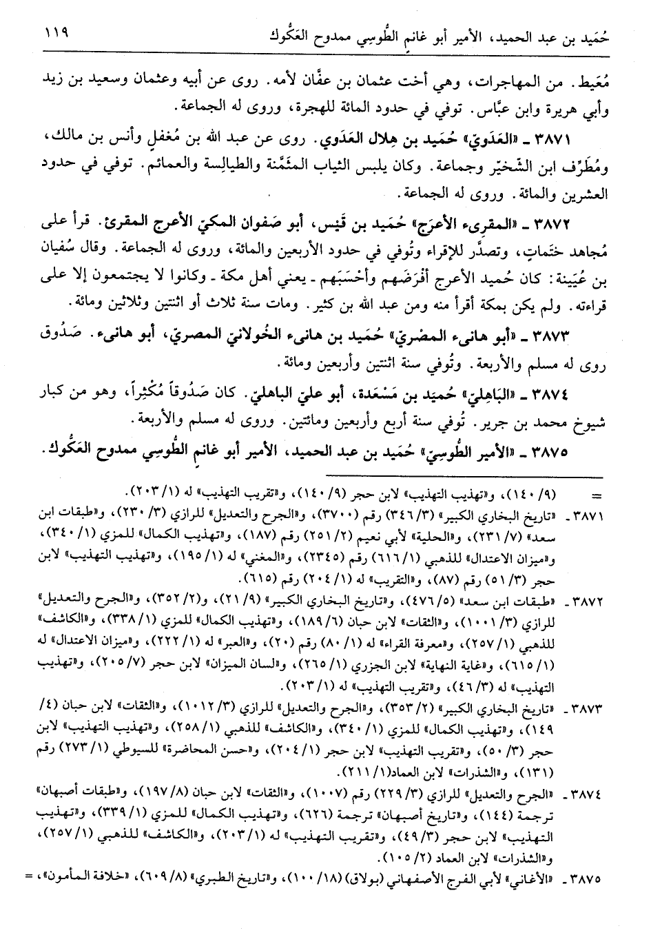 حميد بن قيس أَبُو صَفْوَان المكيّ الْأَعْرَج المقرىء قَرَأَ على مُجَاهِد ختماتٍ وتصدَّر للإقراء وَتُوفِّي فِي حُدُود الْأَرْبَعين وَالْمِائَة وروى لَهُ الْجَمَاعَة وَقَالَ سُفْيَان بن عُيَيْنَة كَانَ حميد الْأَعْرَج أفرضهم وأحسبهم يَعْنِي أهل مَكَّة وَكَانُوا لَا يَجْتَمعُونَ إِلَّا على قِرَاءَته وَلم يكن بِمَكَّة أَقرَأ مِنْهُ وَمن عبد الله بن كثير وَمَات سنة ثَلَاث أَو اثْنَتَيْنِ وَثَلَاثِينَ وَمِائَة
