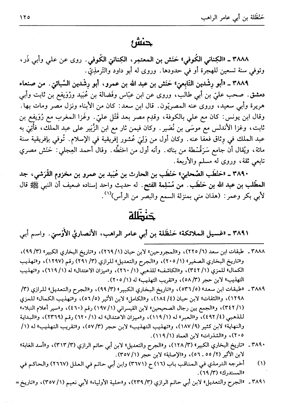 حَنش بن الْمُعْتَمِر الكنانيّ الْكُوفِي روى عَن عَليّ وَأبي ذَر وَتُوفِّي سنة تسعين لِلْهِجْرَةِ أَو فِي حُدُودهَا وروى لَهُ أَبُو دَاوُد التّرمذيّ