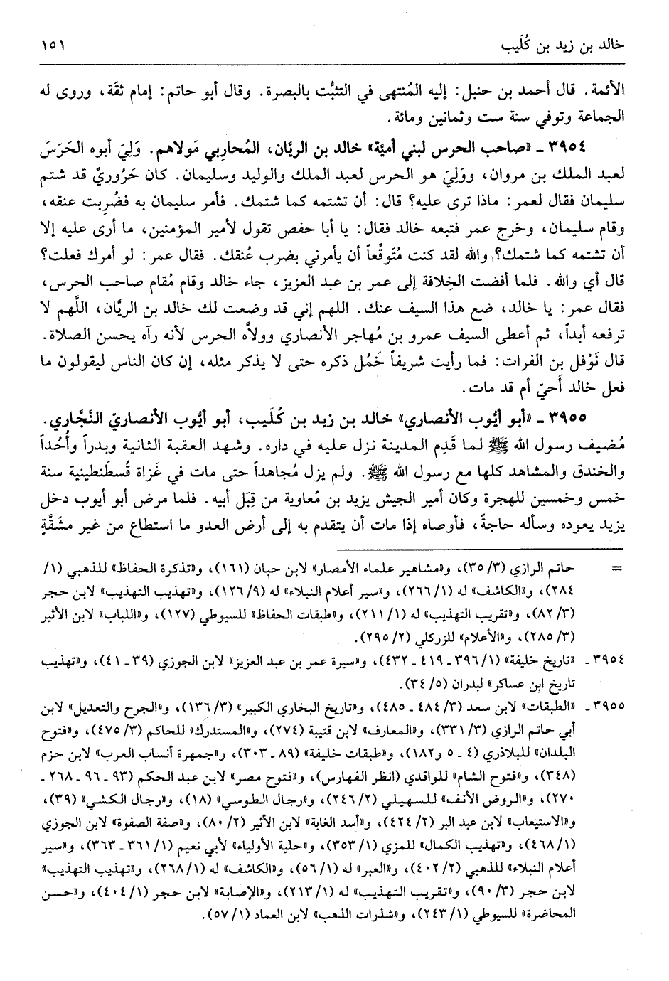 خَالِد بن زيد بن كُلَيْب أَبُو أيُّوب الأنصاريّ النَّجَّاري مضيف رَسُول الله صلّى الله عَلَيْهِ وسلّم لمَّا قدم الْمَدِينَة نزل عَلَيْهِ فِي دَاره وَشهد الْعقبَة الثَّانِيَة وبدراً وأُحُداً وَالْخَنْدَق والمشاهد كلهَا مَعَ رَسُول الله صلى الله عَلَيْهِ وَسلم وَلم يزل مُجَاهدًا حَتَّى مَاتَ فِي غزَاة قسطنطينية سنة خمس وَخمسين لِلْهِجْرَةِ وَكَانَ أَمِير الْجَيْش يزِيد بن مُعَاوِيَة من قبل أَبِيه فَلَمَّا مرض أَبُو أَيُّوب دخل)
