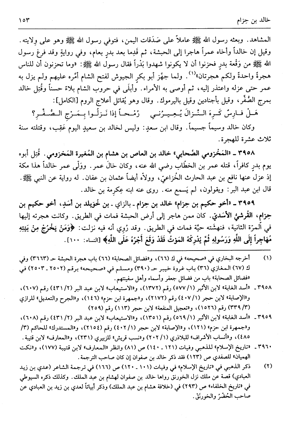 وَقيل أَن خَالِدا وأخاه عمرا هاجرا إِلَى الْحَبَشَة ثمَّ قدما بعد بدرٍ بعام وَفِي روايةٍ وَقد فرغ)