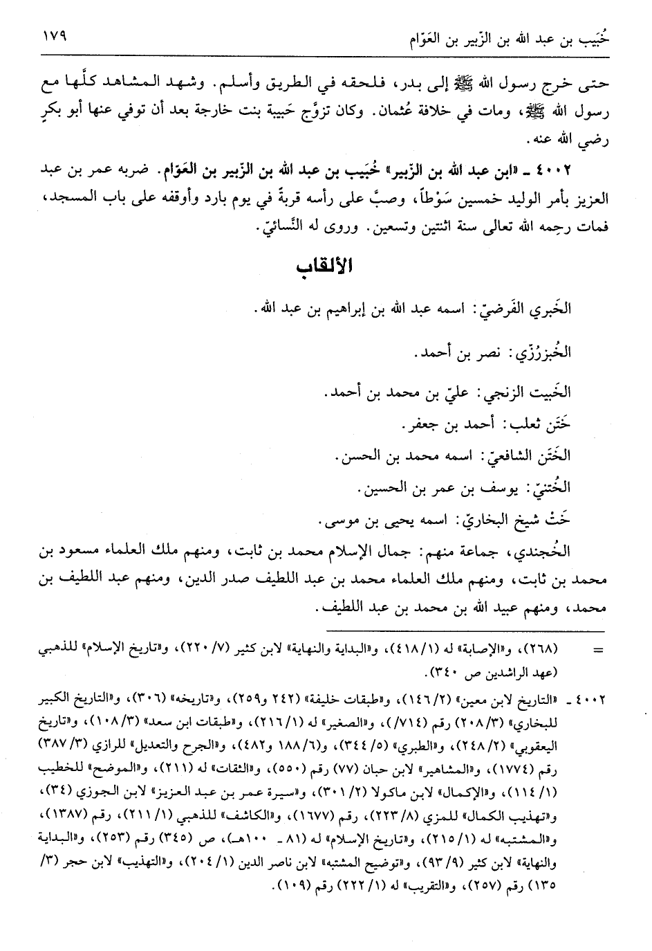 خبيب بن عبد الله بن الزبير بن العوّام ضربه عمر بن عبد الْعَزِيز بِأَمْر الْوَلِيد خمسين سَوْطًا وصبَّ على رَأسه قربَة فِي بَارِد وَأَوْقفهُ على بَاب الْمَسْجِد فَمَاتَ رَحمَه الله تَعَالَى سنة اثْنَتَيْنِ وَتِسْعين وروى لَهُ النَّسائيّ