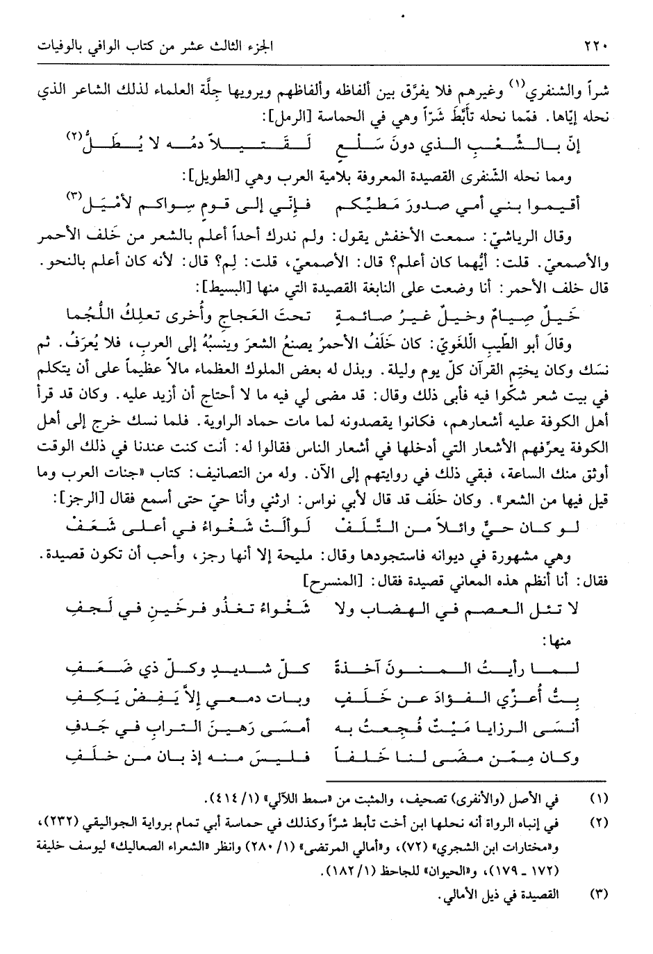 شرا والأنفري وَغَيرهم فَلَا يفرَّق بَين أَلْفَاظه وَأَلْفَاظهمْ ويرويها جلَّة الْعلمَاء لذَلِك الشَّاعِر الَّذِي نحله إيّاها فمّما نحله)