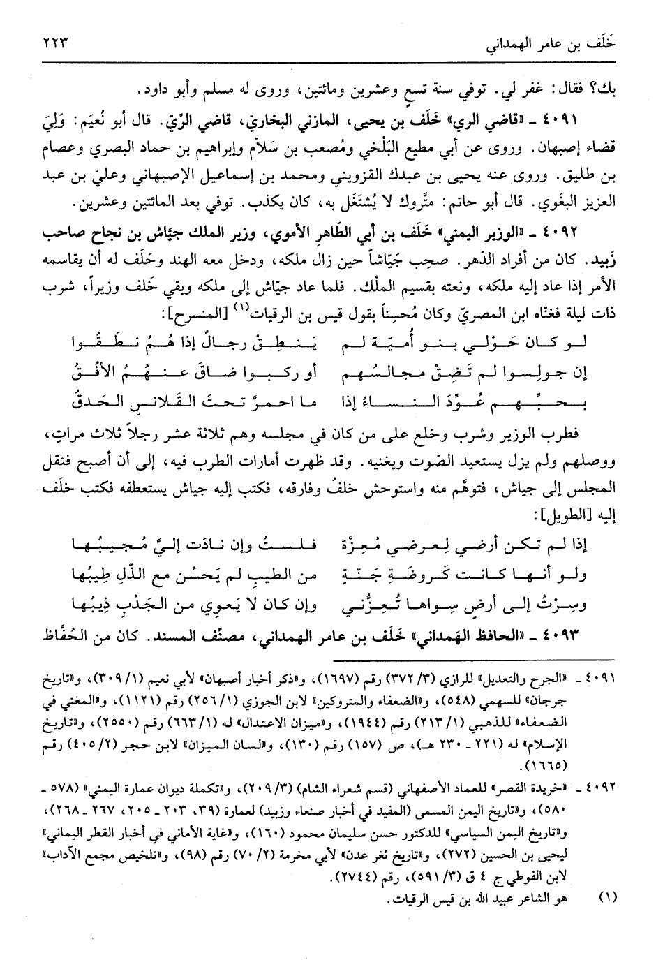 فطرب الْوَزير وَشرب وخلع على من كَانَ فِي مَجْلِسه وهم ثَلَاثَة عشر رجلا ثَلَاث مراتٍ ووصلهم وَلم يزل يستعيد الصّوت ويغنيه وَقد ظَهرت امارات الطَّرب فِيهِ إِلَى أَن اصبح فَنقل الْمجْلس إِلَى جياش فتوهَّم مِنْهُ واستوحش خلف وفارقه فَكتب إِلَيْهِ جياش يستعطفه فَكتب خلف إِلَيْهِ من الطَّوِيل)