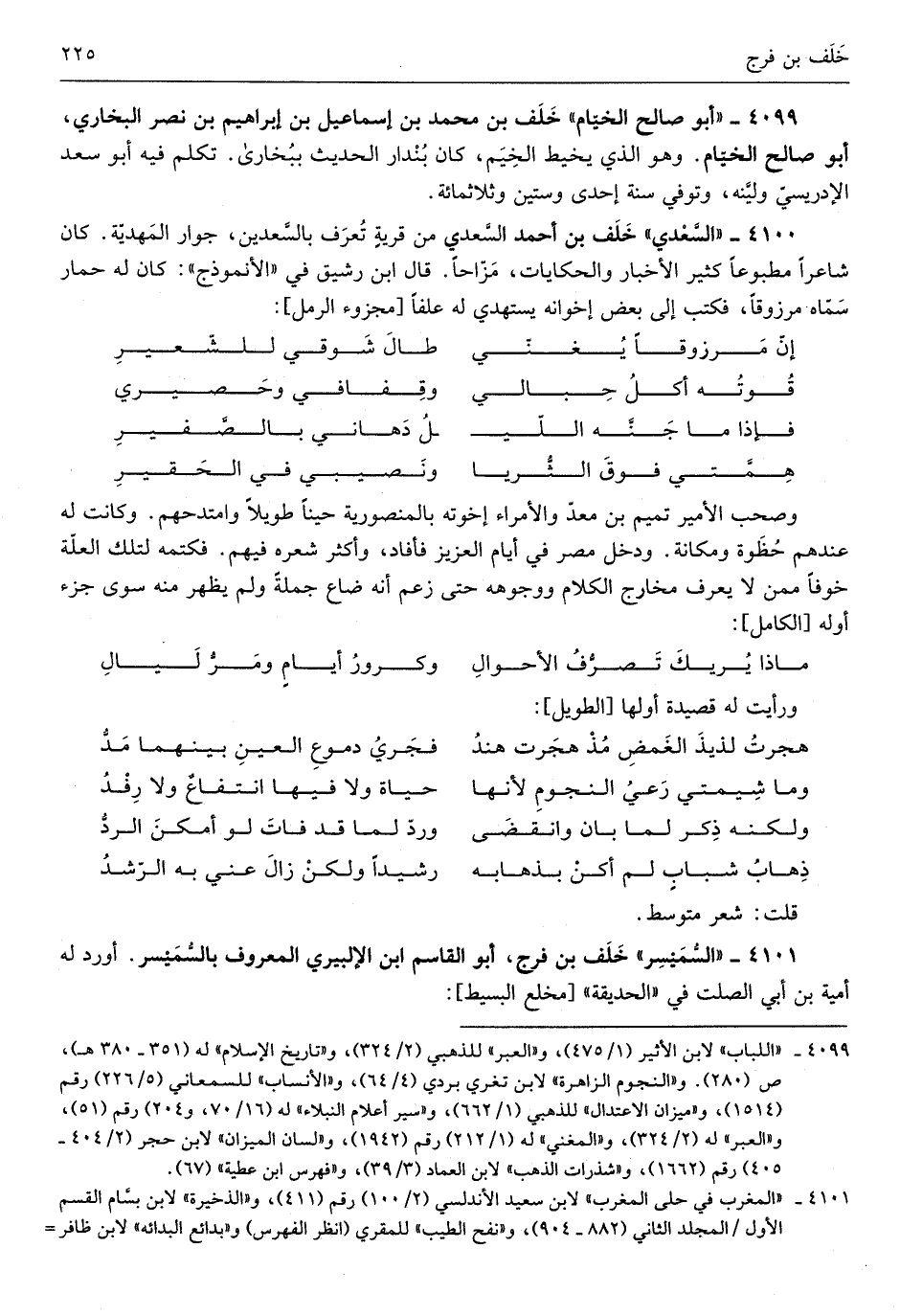 قلت شعر متوسط السُّميسر خلف بن فرج أبوالقاسم ابْن الإلبيري الْمَعْرُوف بالسُّميسر أورد لَهُ أُميَّة بن أبي الصلب فِي الحديقة من مخلع الْبسط