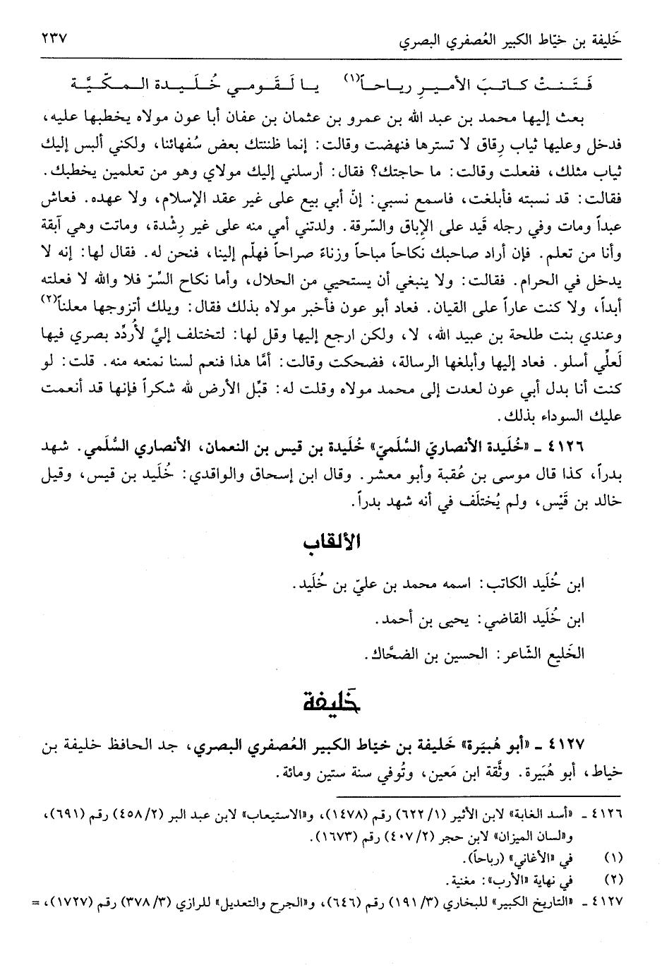 خَليفَة بن خيّاط الْكَبِير الْعُصْفُرِي الْبَصْرِيّ جد الْحَافِظ خَليفَة بن خياط أَبُو هُبَيْرَة وثَّقه ابْن معِين وَتُوفِّي سنة سِتِّينَ وَمِائَة