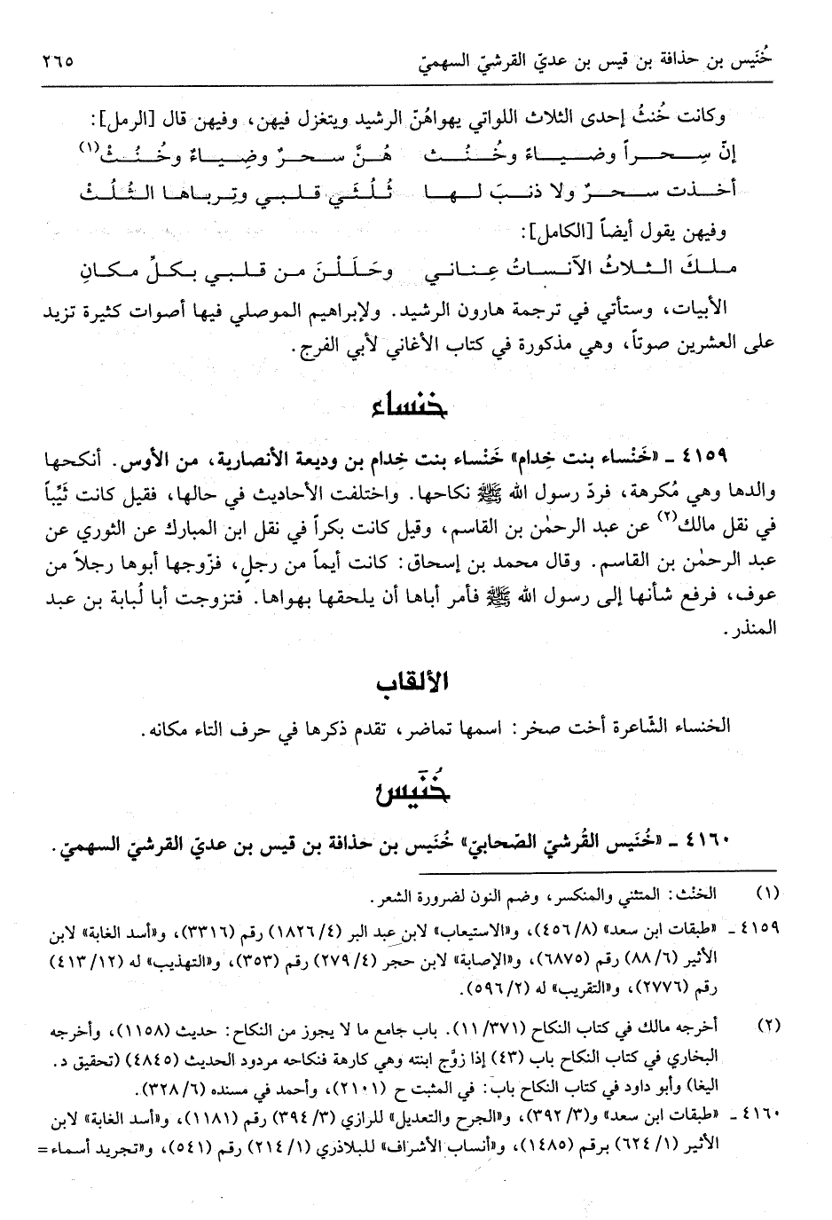 الخنساء الشّاعرة أُخْت صَخْر اسْمهَا تماضر تقدم ذكرهَا فِي حرف التَّاء مَكَانَهُ