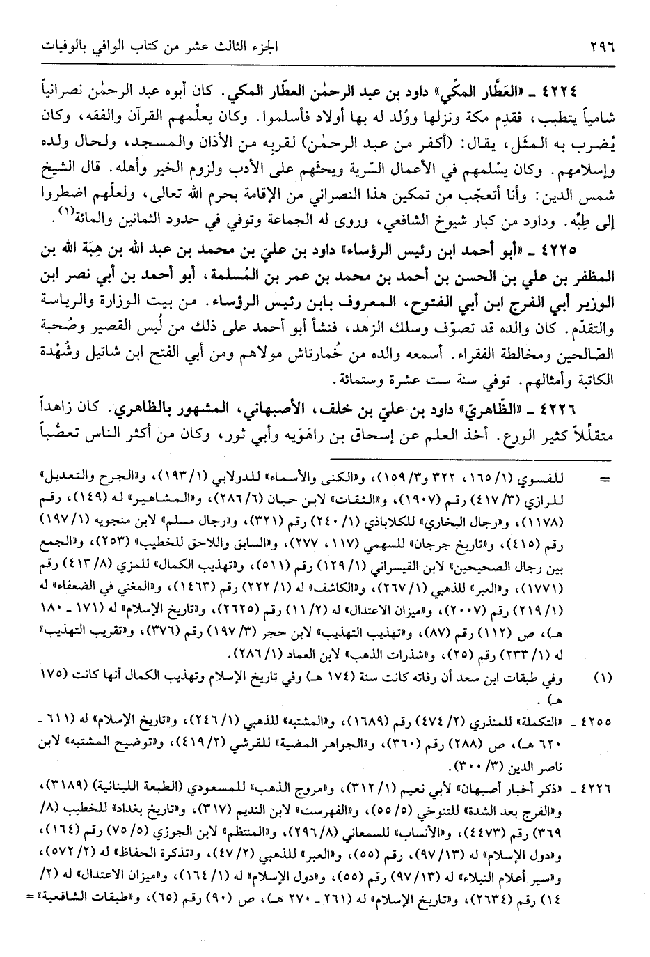 دَاوُد بن عليّ بن خلف الْأَصْبَهَانِيّ الْمَشْهُور بالظاهري كَانَ زاهداً متقلِّلاً كثير الْوَرع أَخذ الْعلم عَن إِسْحَق بن رَاهَوَيْه وَأبي ثَوْر وَكَانَ من أَكثر النَّاس تعصُّباً