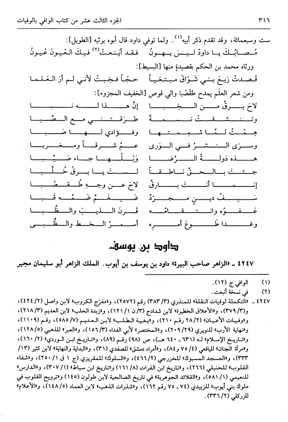 سِتّ وَسبع مائَة وَقد تقدم ذكر أَبِيه وَلما توفّي دَاوُد قَالَ أَبوهُ يرثيه من الطَّوِيل