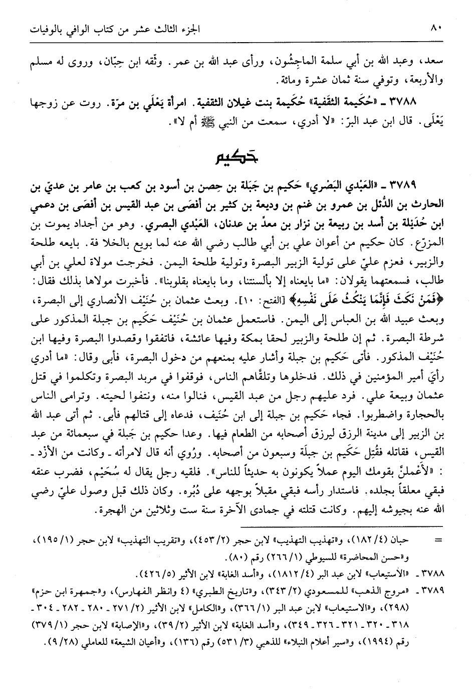 حَكِيم من أعوان عَليّ بن أبي طَالب رَضِي الله عَنهُ لما بُويِعَ بالخلافة بَايعه طَلْحَة وَالزُّبَيْر فعزم عليّ على تَوْلِيَة الزبير الْبَصْرَة وتولية طَلْحَة الْيمن فَخرجت مولاة لعَلي بن أبي طَالب فسمعتهما يَقُولَانِ مَا بَايَعْنَاهُ إِلَّا بألسنتنا وَمَا بَايَعْنَاهُ بقلوبنا فَأخْبرت مَوْلَاهَا بذلك فَقَالَ وَمن نكث فإنَّما ينْكث على نَفسه وَبعث عُثْمَان بن حنيف الْأنْصَارِيّ إِلَى الْبَصْرَة وَبعث عبيد الله بن الْعَبَّاس إِلَى الْيمن فَاسْتعْمل عُثْمَان بن حنيف حَكِيم بن جبلة الْمَذْكُور على شرطة الْبَصْرَة