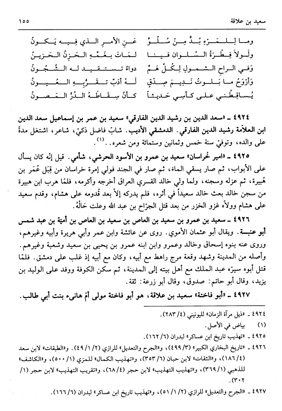 سعيد بن عمر بن إِسْمَاعِيل سعد الدّين ابْن العلاّمة رشيد الدّين الفارقي الدِّمَشْقِي الأديب شابّ فَاضل ذكيّ شَاعِر اشْتغل مُدَّة عَلَى وَالِده وتوفيّ سنة خمس وَثَمَانِينَ وست مائَة وَمن شعره