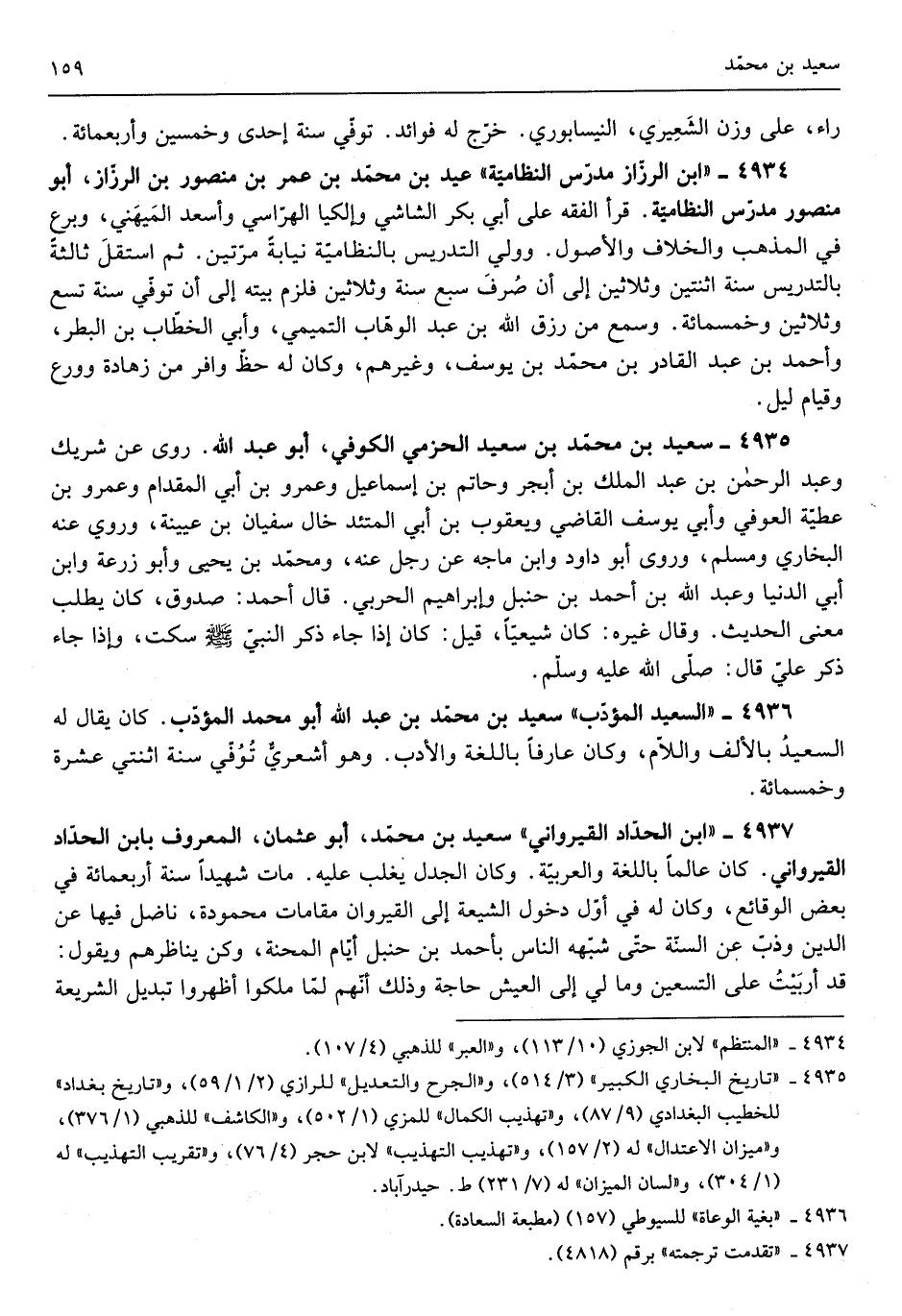 سعيد بن محمّد أَبُو عُثْمَان الْمَعْرُوف بِابْن الحدّاد القيرواني كَانَ عَالما باللغة والعربيّة وَكَانَ الجدل يغلب عَلَيْهِ مَاتَ شَهِيدا سنة أَربع مائَة فِي بعض الوقائع وَكَانَ لَهُ فِي أولّ دُخُول الشِّيعَة إِلَى القيروان مقامات محمودة ناضل فِيهَا عَن الدّين وذبّ عَن السنّة حتّى شبّهه النَّاس بِأَحْمَد بن حَنْبَل أيّام المحنة وَكَانَ يناظرهم وَيَقُول قَدْ أربَيْتُ عَلَى التسعين وَمَا لأي إِلَى الْعَيْش حَاجَة وَذَلِكَ أنّهم لمّ ملكوا أظهرُوا تَبْدِيل الشَّرِيعَة
