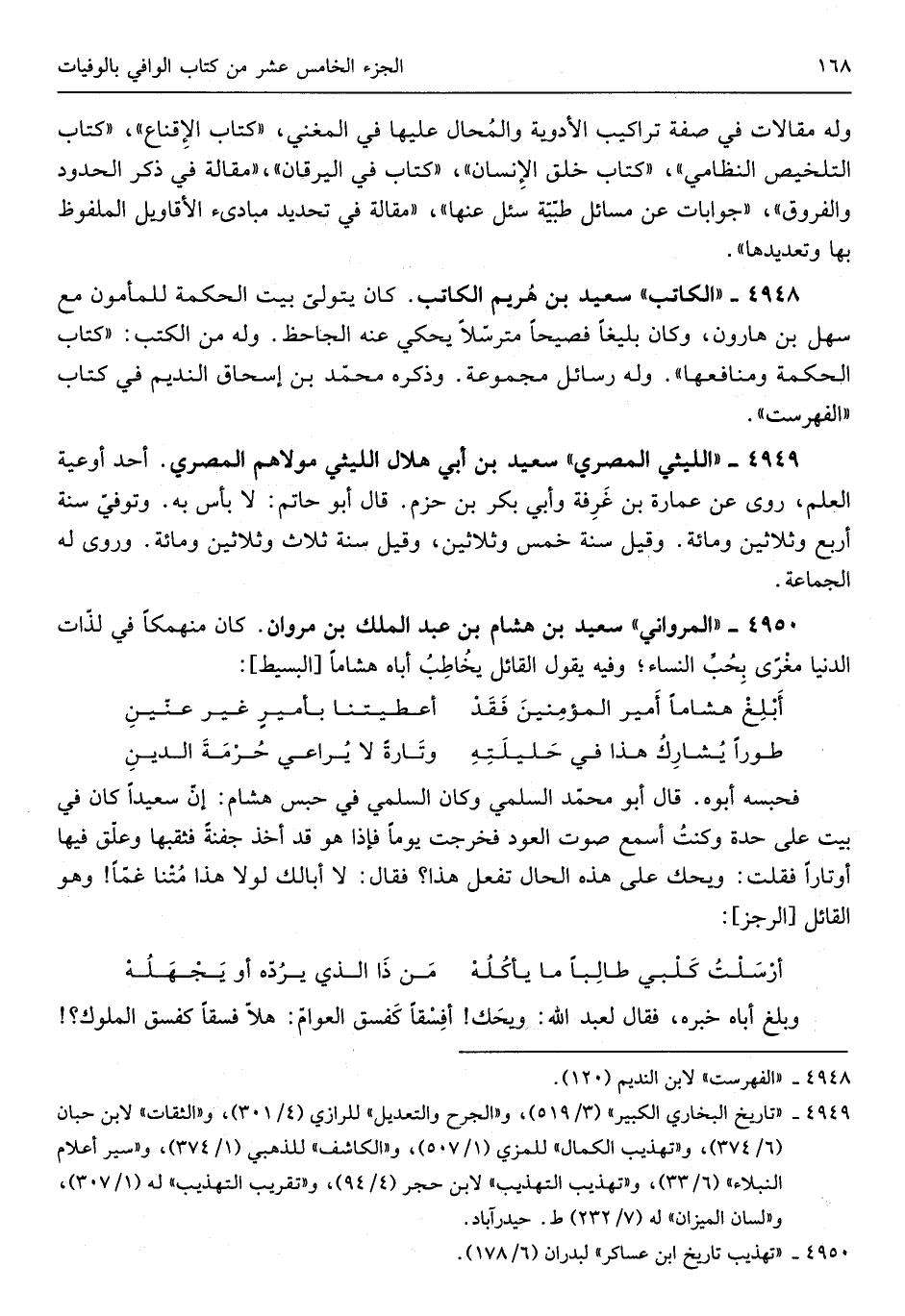 سعيد بن هِشَام بن عبد الْملك بن مَرْوَان كَانَ منهمكاً فِي لذّات الدُّنْيَا مغْرىً بِحٌبِّ النِّسَاء وَفِيه يَقُول الْقَائِل يُخاطِبُ أَبَاهُ هشاماً من الْبَسِيط