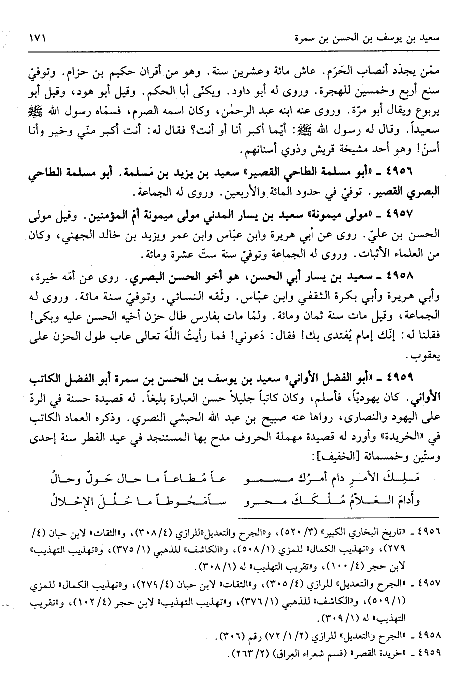 أبي الْحسن هُوَ أَخُو الْحسن الْبَصْرِيّ روى عَن أمّه خيرة وَأبي هُرَيْرَة وَأبي بكرَة الثَّقَفِيّ وَابْن عبّاس وثّقه النَّسَائِيّ وتوفيّ سنة مائَة وروى لَهُ الْجَمَاعَة وَقيل مَاتَ سنة ثَمَان وَمِائَة