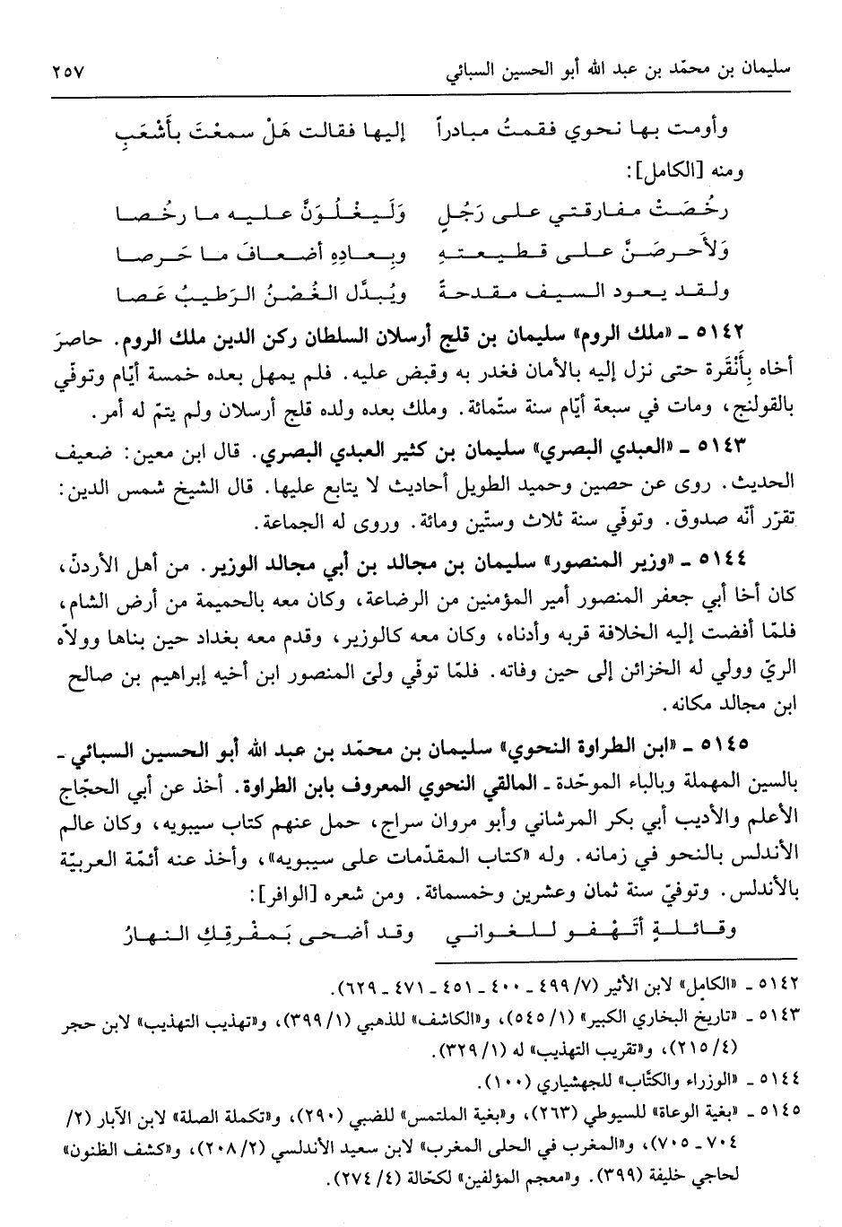 النَّحْوِيّ الْمَعْرُوف بِابْن الطراوة أَخذ عَن أبي الحجّاج الأعلم والأديب أبي بكر المرشاني وَأَبُو مَرْوَان سراج حمل عَنْهُم كتاب سِيبَوَيْهٍ وَكَانَ عَالم الأندلس بالنحو فِي زَمَانه وَلَهُ كتاب المقدّمات عَلَى سِيبَوَيْهٍ وَأخذ عَنهُ أئمّة العربيّة بالأندلس وتوفيّ سنة ثَمَان وَعشْرين وَخمْس مائَة وَمن شعره من الوافر