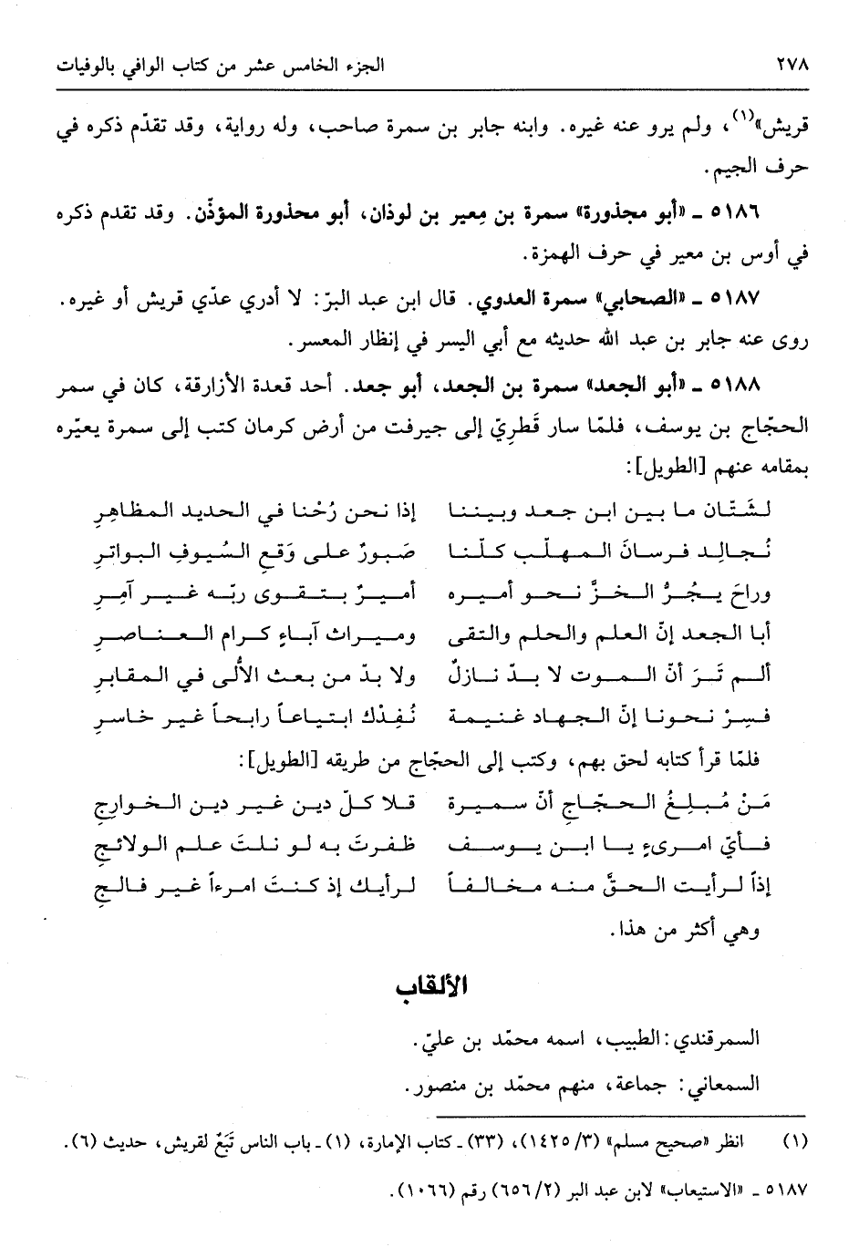(مَنْ مُبلِغُ الحجّاجِ أنّ سَمُرَة ... قلا كلّ دين غير دين الخوارِجِ)