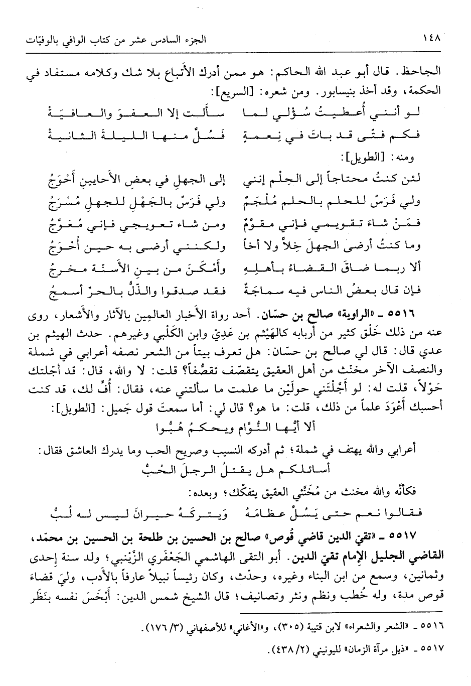 الجاحظ قَالَ أَبُو عبد الله الْحَاكِم هُوَ مِمَّن أدْرك الأتباع بِلَا شكّ وَكَلَامه مُسْتَفَاد فِي الْحِكْمَة وَقد أَخذ بنيسابور وَمن شعره
