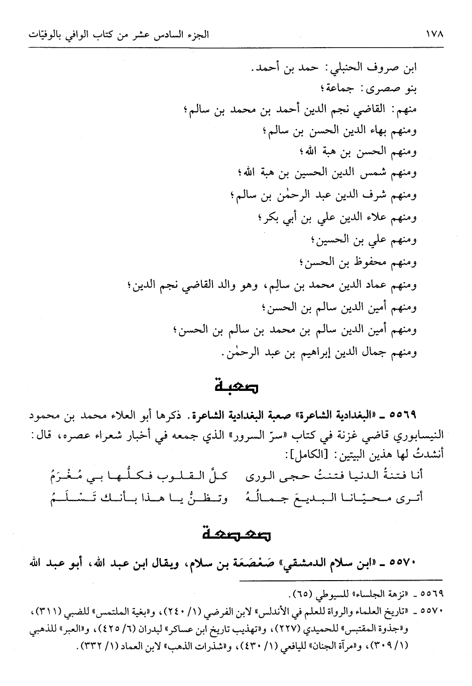 بَنو صصرى جمَاعَة مِنْهُم القَاضِي نجم الدّين أَحْمد بن مُحَمَّد بن سَالم وَمِنْهُم بهاء الدّين الْحسن بن سَالم وَمِنْهُم الْحسن بن هبة الله وَمِنْهُم شمس الدّين الْحُسَيْن بن هبة الله)