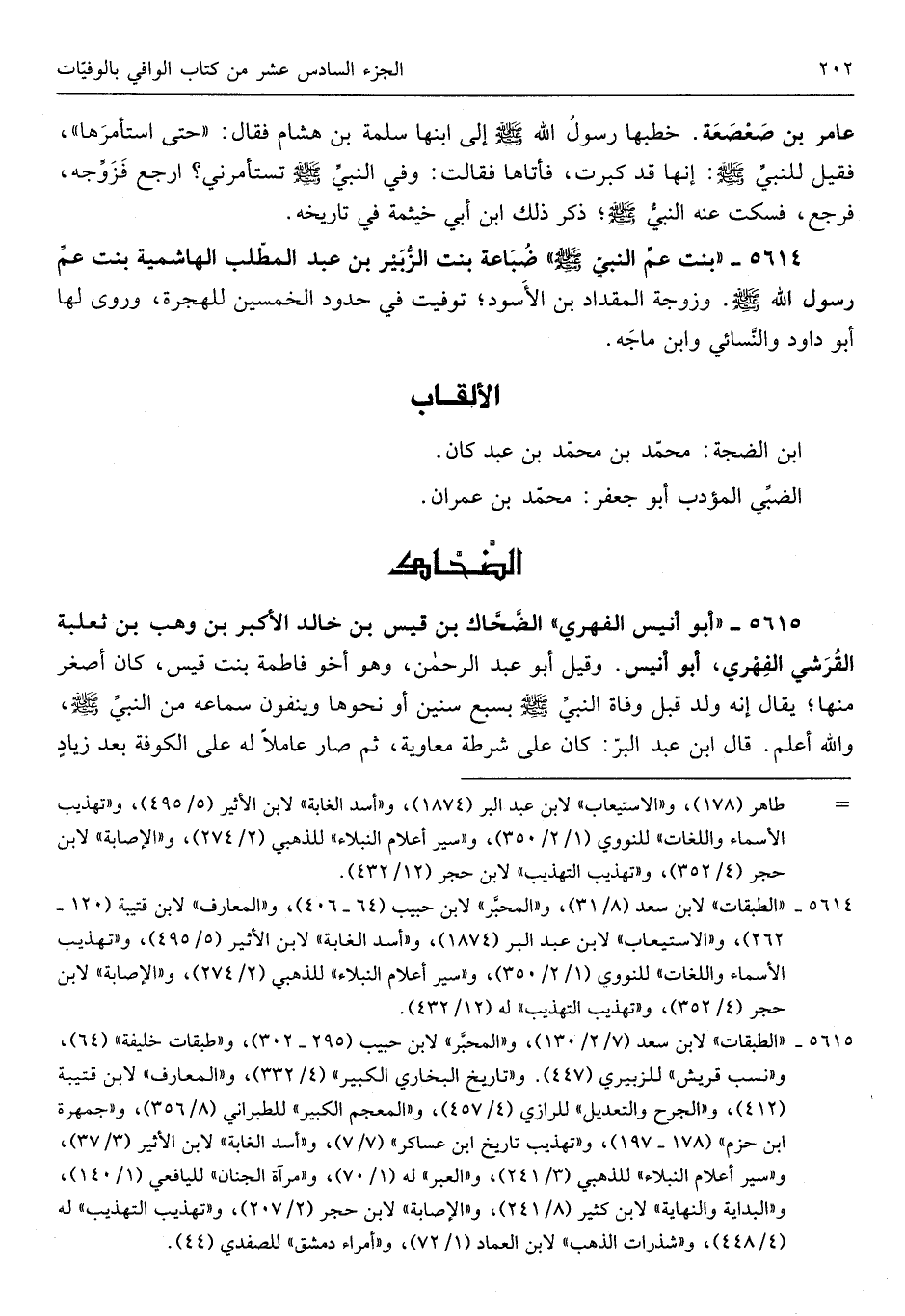 ضباعة بنت الزبير بن عبد الْمطلب الهاشمية بنت عَم رَسُول الله صلى الله عَلَيْهِ وَسلم وزوّجه الْمِقْدَاد بن الْأسود توفيت فِي حُدُود الْخمسين لِلْهِجْرَةِ وروى لَهَا أَبُو دَاوُد وَالنَّسَائِيّ وَابْن مَاجَه