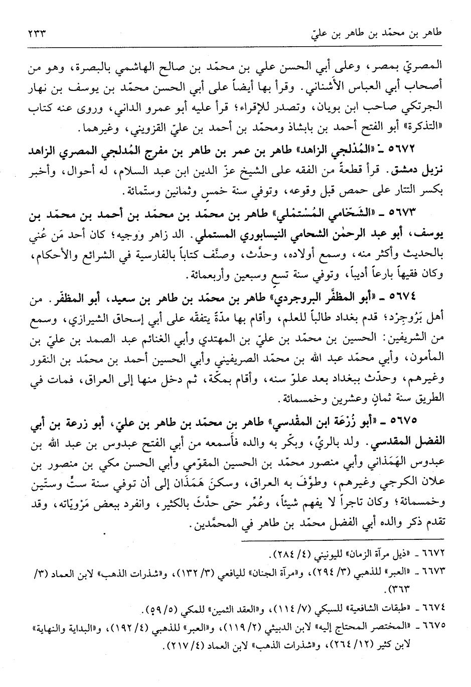 طَاهِر بن مُحَمَّد بن طَاهِر بن عَليّ أَبُو زرْعَة بن أبي الْفضل الْمَقْدِسِي ولد بِالريِّ وَبكر بِهِ وَالِده فاسمعه من أبي الْفَتْح عَبدُوس بن عبد الله بن عَبدُوس الهمذاني وَأبي مَنْصُور مُحَمَّد بن الْحُسَيْن المقومي وَأبي الْحسن مكي بن مَنْصُور ابْن عَلان الكرجي وَغَيرهم وطوف بِهِ الْعرَاق وَسكن همذان إِلَى أَن توفّي سنة سِتّ وَسِتِّينَ وَخَمْسمِائة وَكَانَ تَاجِرًا لَا يفهم شَيْئا وَعمر حَتَّى حدث بالكثير وَانْفَرَدَ بِبَعْض مروياته وَقد تقدم ذكر وَالِده أبي الْفضل مُحَمَّد بن طَاهِر فِي المحمدين