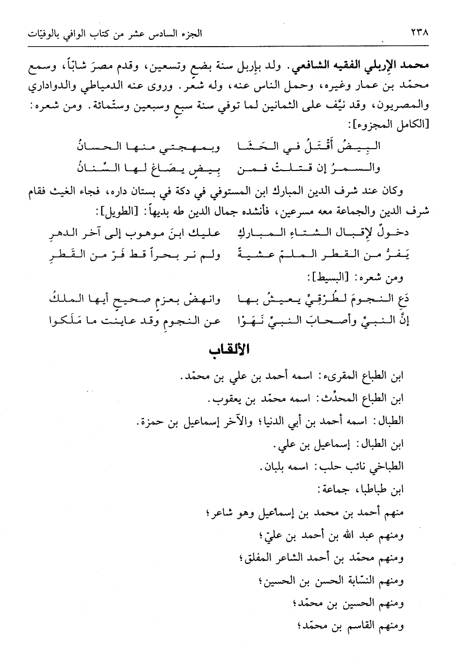الطباخي نَائِب حلب اسْمه بلبان ابْن طَبَاطَبَا جمَاعَة مِنْهُم أَحْمد بن مُحَمَّد بن إِسْمَاعِيل وَهُوَ شَاعِر وَمِنْهُم عبد الله بن احْمَد بن عَليّ وَمِنْهُم مُحَمَّد بن أَحْمد الشَّاعِر المفلق)