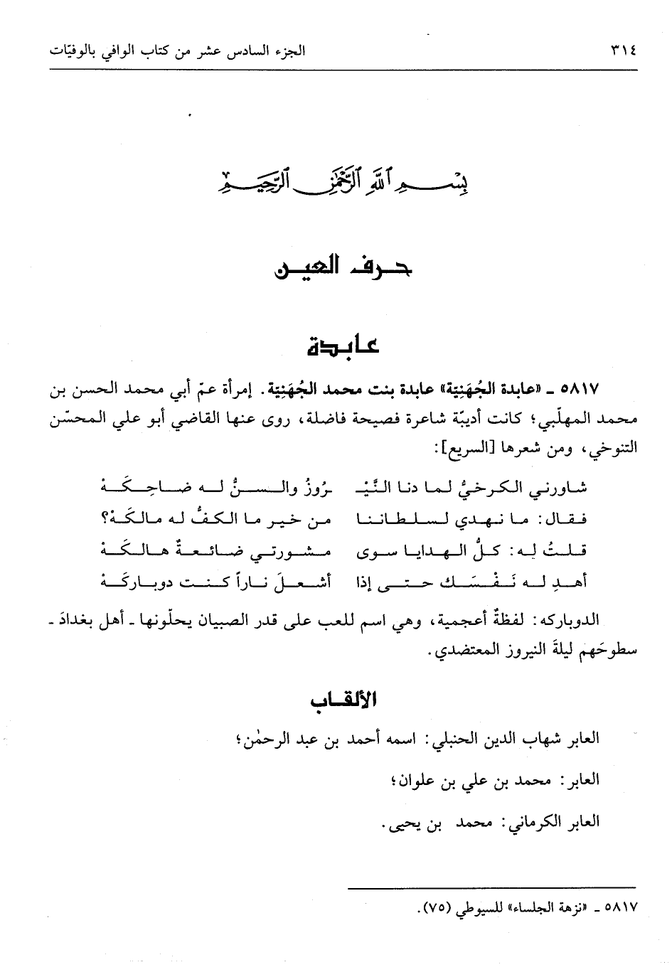 العابر شهَاب الدّين الْحَنْبَلِيّ اسْمه أَحْمد بن عبد الرَّحْمَن العابر مُحَمَّد بن عَليّ بن علوان العابر الْكرْمَانِي مُحَمَّد بن يحيى