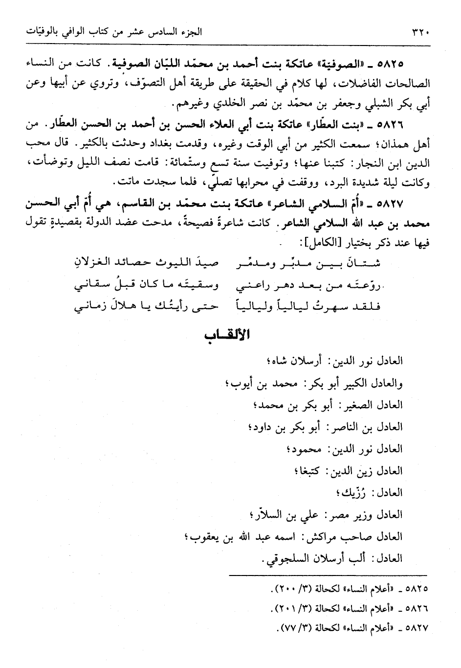 الْعَادِل نور الدّين أرسلان شاه والعادل الْكَبِير أَبُو بكر مُحَمَّد بن أَيُّوب الْعَادِل الصَّغِير أَبُو بكر بن مُحَمَّد الْعَادِل بن النَّاصِر أَبُو بكر بن دَاوُد الْعَادِل نور الدّين مَحْمُود الْعَادِل زين الدّين كتبغا الْعَادِل رزيك الْعَادِل وَزِير مصر عَليّ بن السلار الْعَادِل صَاحب مراكش اسْمه عبد الله بن يَعْقُوب الْعَادِل ألب أرسلان السلجوقي