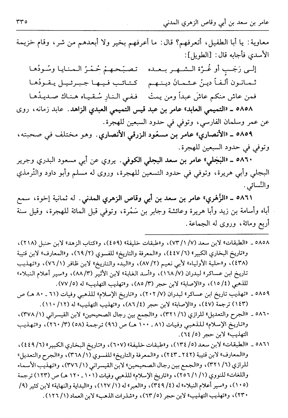 عَامر بن عبد قيس التَّمِيمِي الْعَبْدي الزَّاهِد عَابِد زَمَانه روى عَن عمر وسلمان الْفَارِسِي وَتُوفِّي فِي حُدُود السّبْعين لِلْهِجْرَةِ 5859