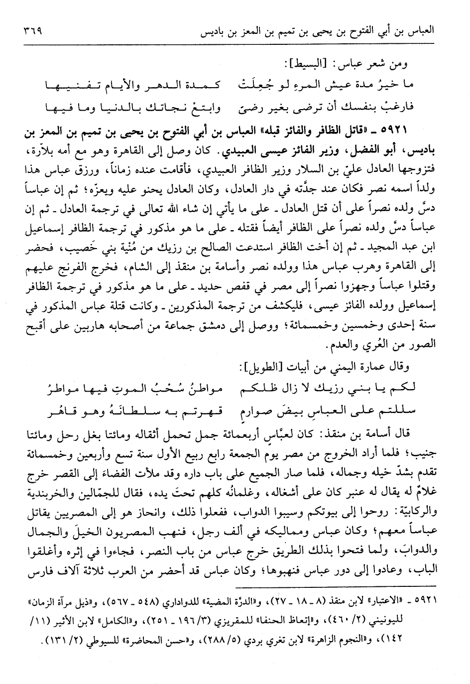 وَقَالَ عمَارَة اليمني من أَبْيَات الطَّوِيل
