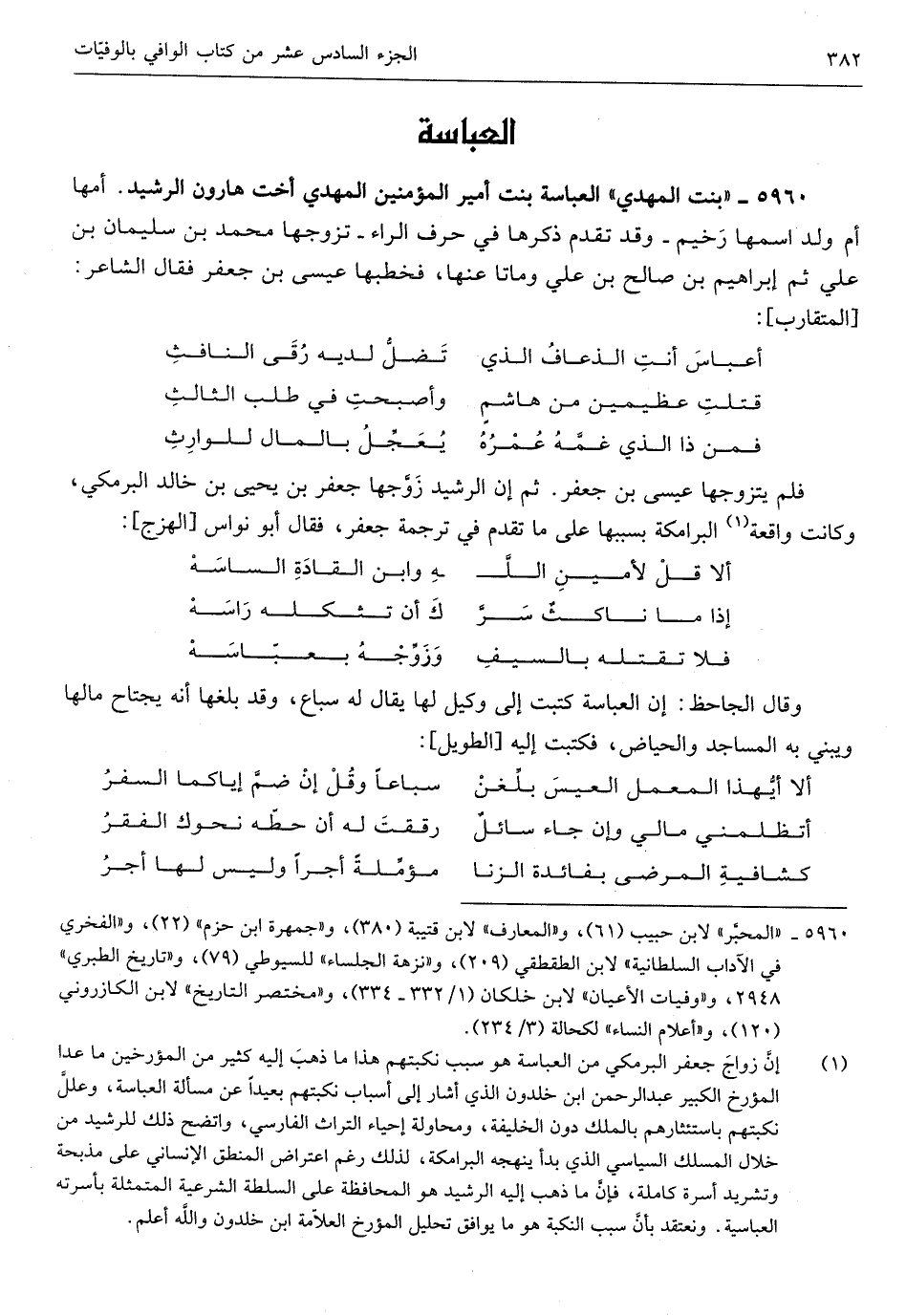 فَلم يَتَزَوَّجهَا عِيسَى بن جَعْفَر ثمَّ إِن الرشيد زَوجهَا جَعْفَر بن يحيى بن خَالِد الْبَرْمَكِي وَكَانَت وَاقعَة البرامكة بِسَبَبِهَا على مَا تقدم فِي تَرْجَمَة جَعْفَر فَقَالَ أَبُو نواس الهزج
